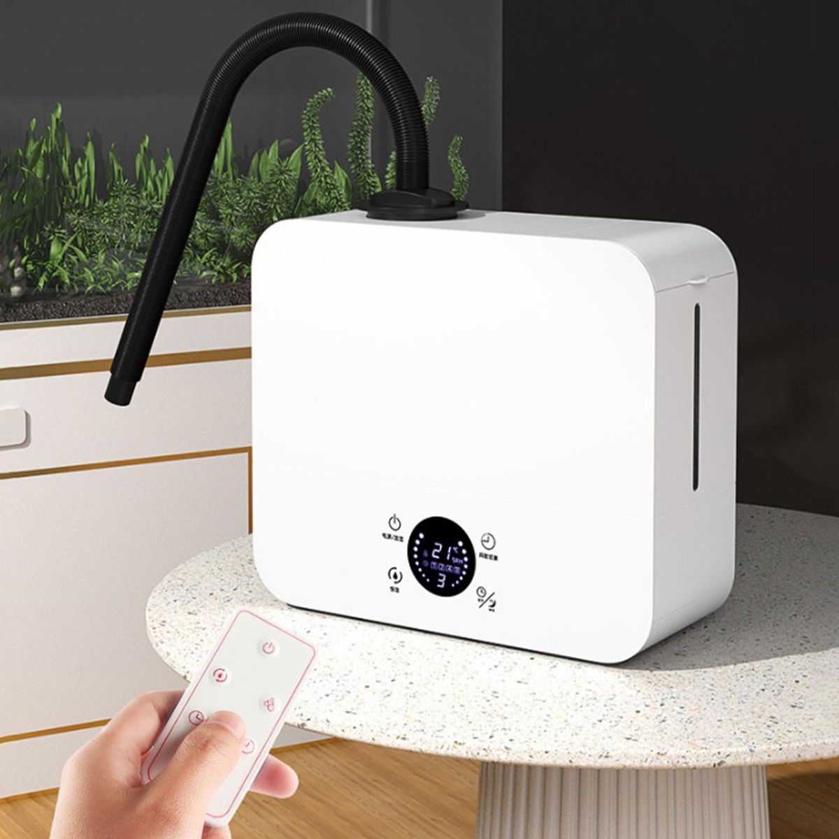 The glass container humidifier has two operation modes, remote control and touch screen, with a retractable hose, which is convenient to use.