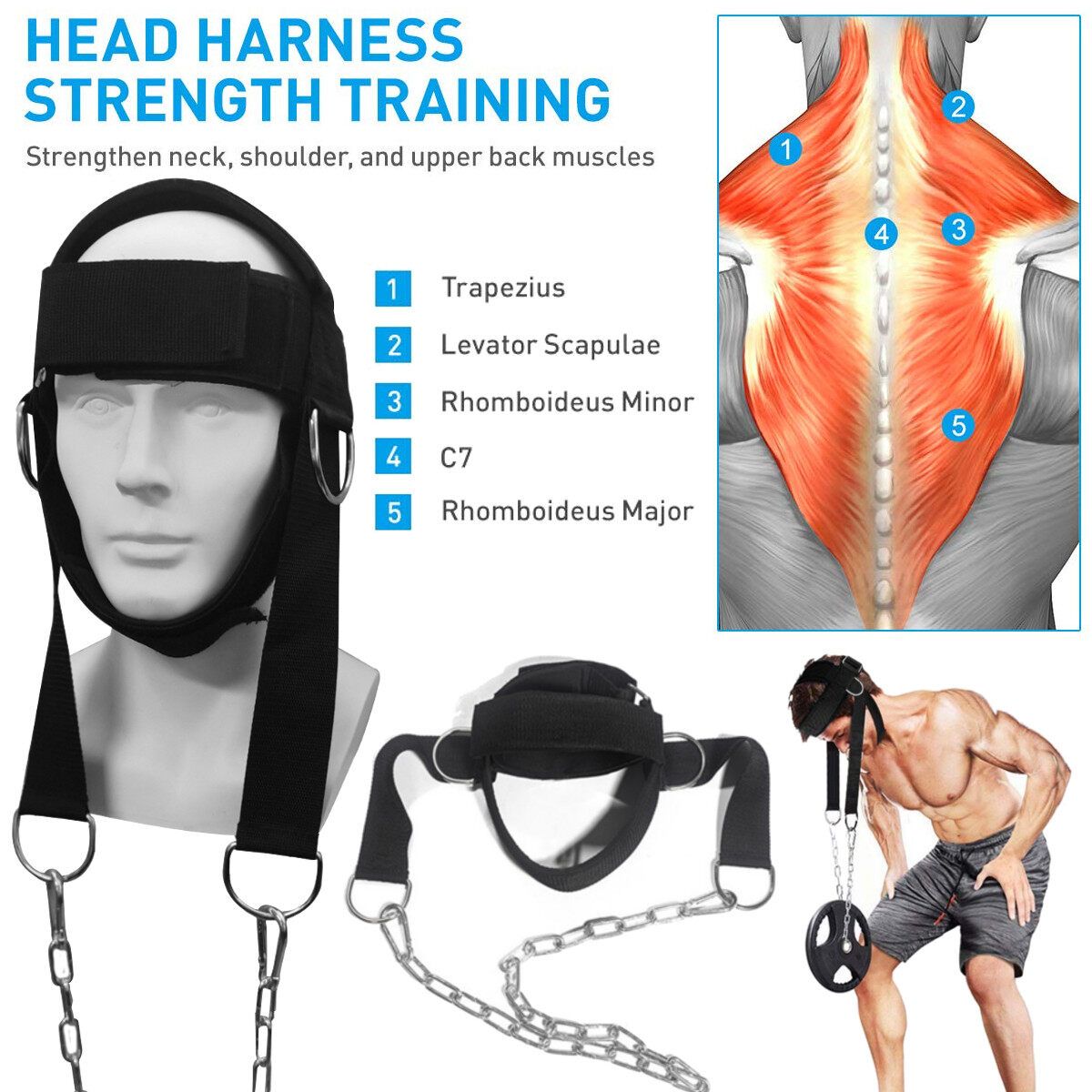 Resilient Trainer Weight Lifting Strength Neck Muscles Builder Adjustable Chain Belt Head Harness Gym FitnessSpecifications:Type: Head HarnessMaterial: Neoprene + MetalColor: Black + silverSize (about):Length:approx.75cm/29.53"Width: approx.5cm/1.97"Chain Length: approx.47cm/18.51"Package Includes:1X Head HarnessFeature:It is made of n durable neopreneto make lifting more comfortable preventing abrasion.Chains made of metal and d-shackle.It is shock absorbing and also avoids harness for pinching, scraping or .Adjustable head harnesses are technically built to strengthen your neck and muscles.And take them to a level where conventional harnesses could be desired.Fully adjustable hook and loop closure. One size fits all size headsRecommended for gym, boxing, wrestling or rehabilitation.Suggested to use them with free weights or to hook them to a high or low pulley on a machine.Notice:1.The real of the item may be slightly different from the pictures on website caused by many factors such as brightness of your and light brightness.2.Please allow slight deviation for the measurement data.3.Please allow 1-3cm error.Ifyouhaveanyquestions,pleaseletusknown.Wishyouhaveahappyshoppingtime!Detail ImagePayment1.We accept .