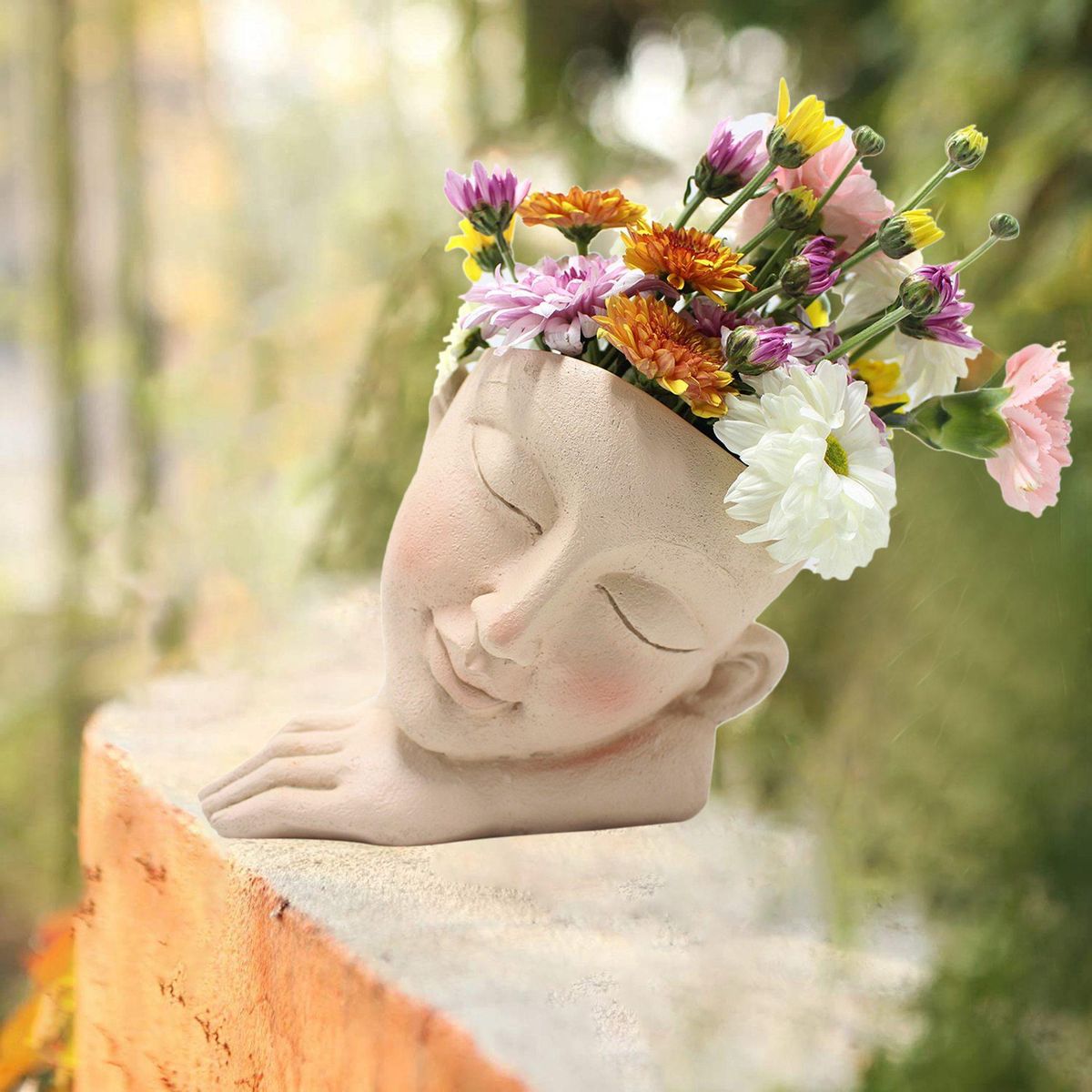 Buy Resin Cute Face Flower Pot Head Closed Eyes Planting in Nigeria