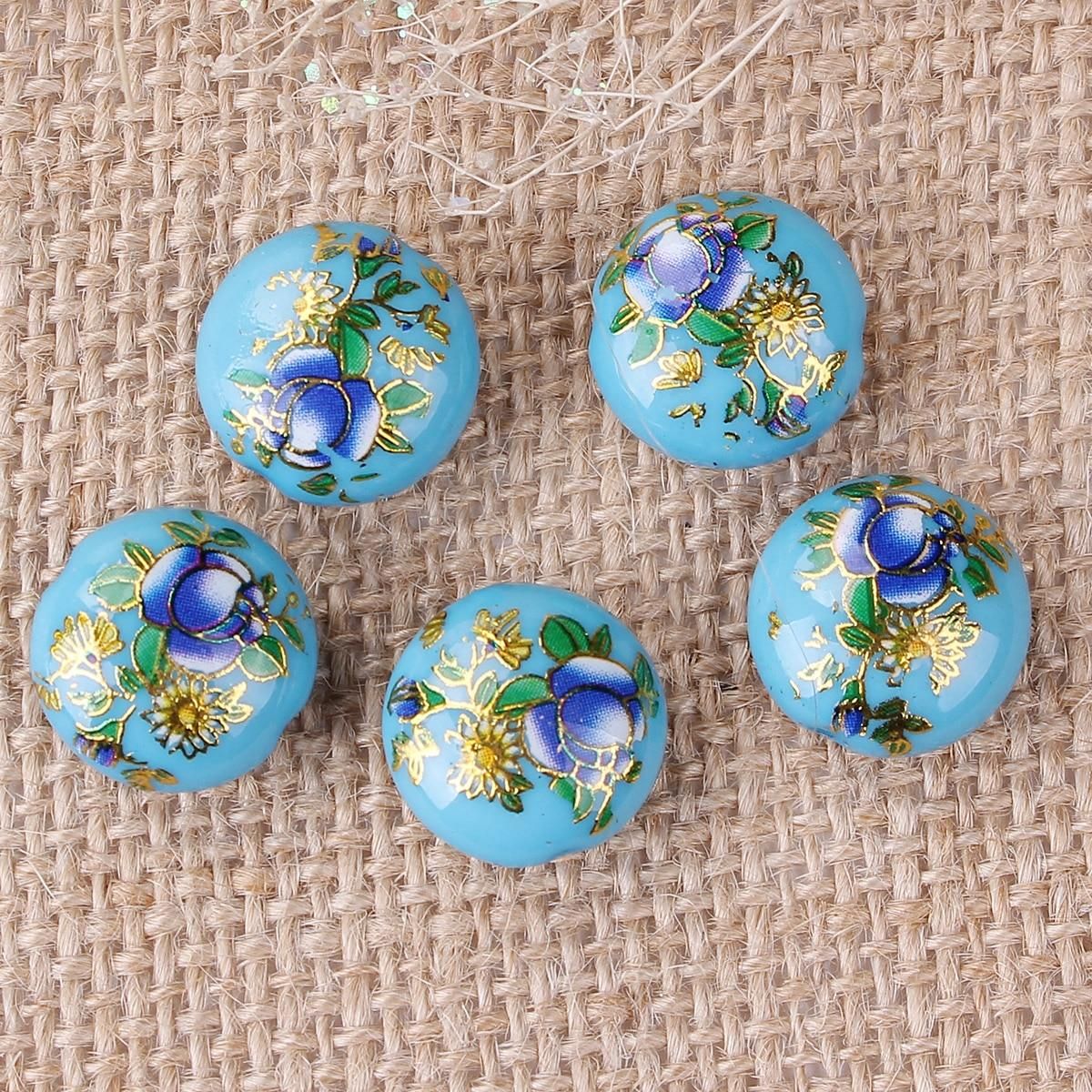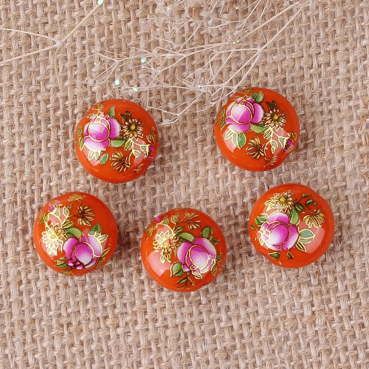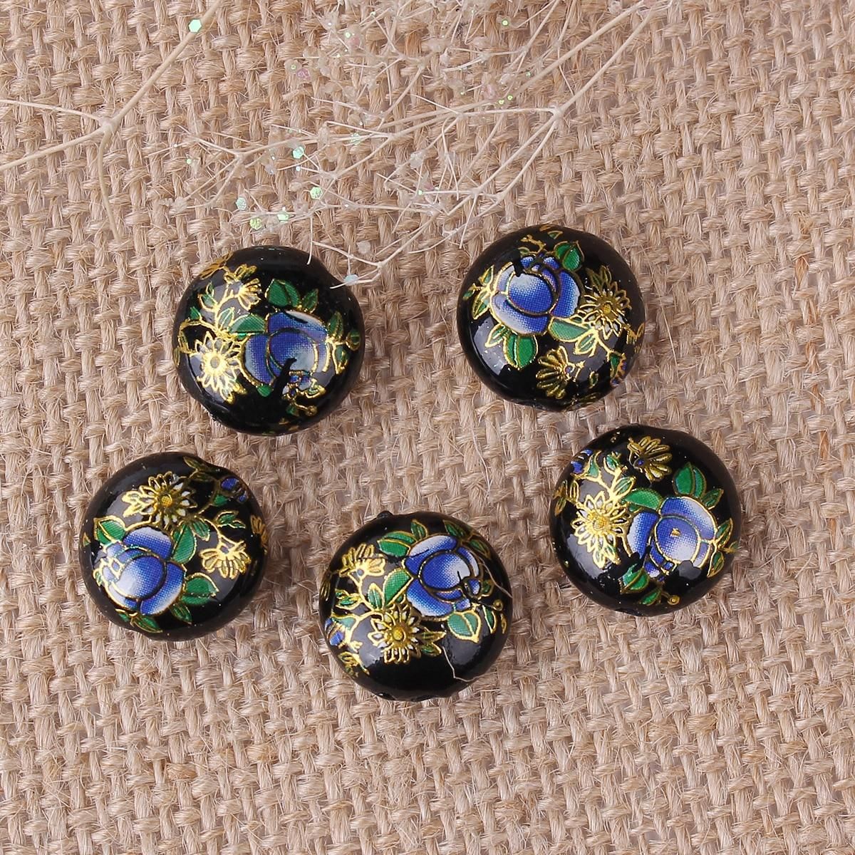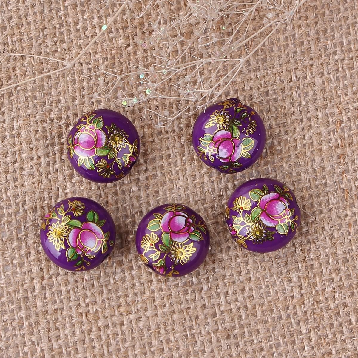 Buy Resin Japan Painting Vintage Japanese Tensha Spacer Beads Ball Purple Rose Flower Pattern About 16mm Dia, 5 PCs in Nigeria