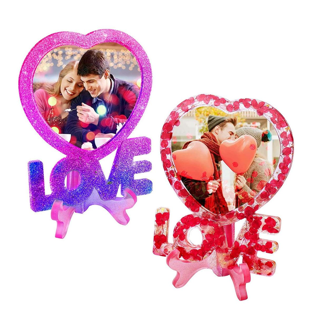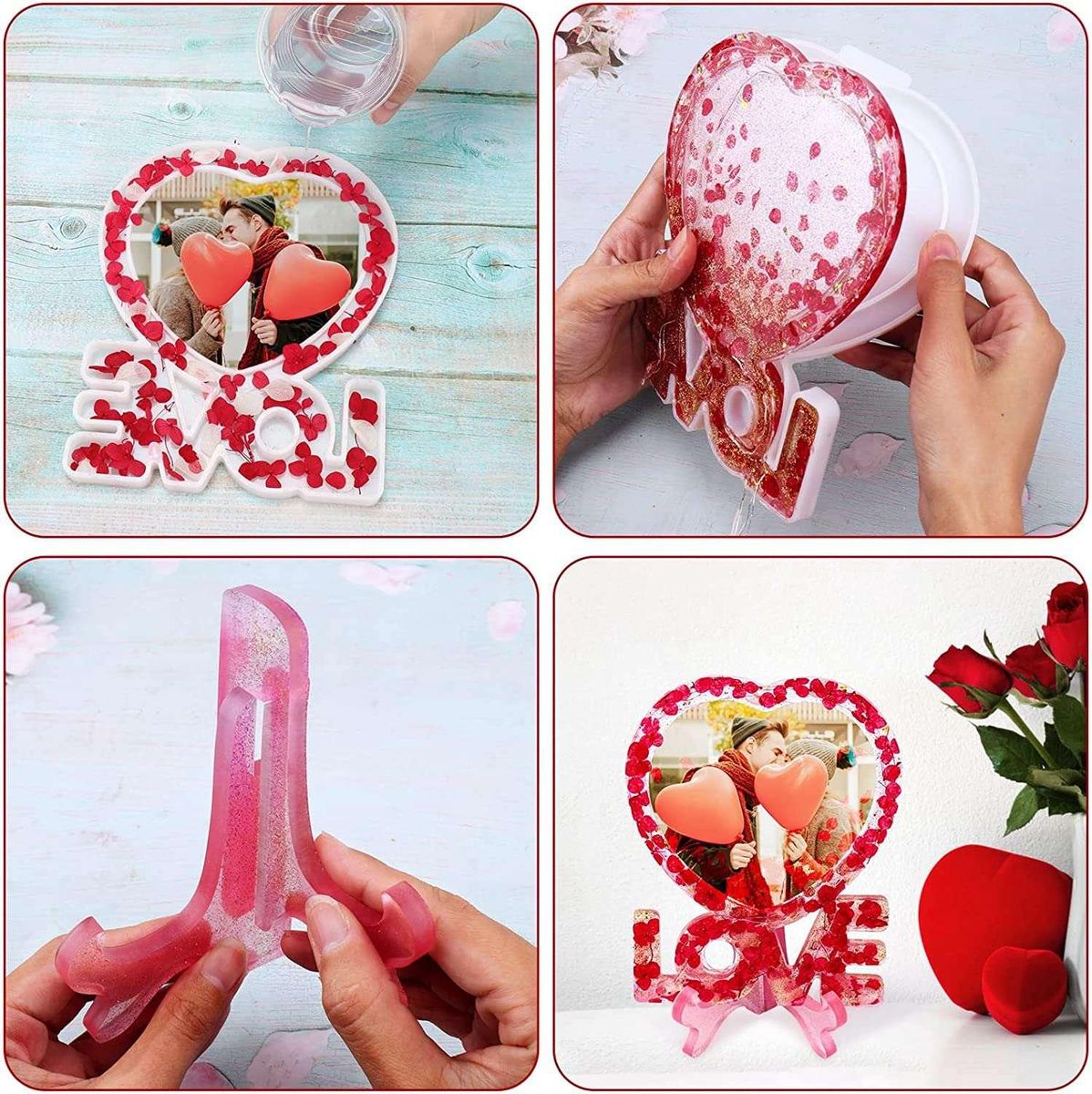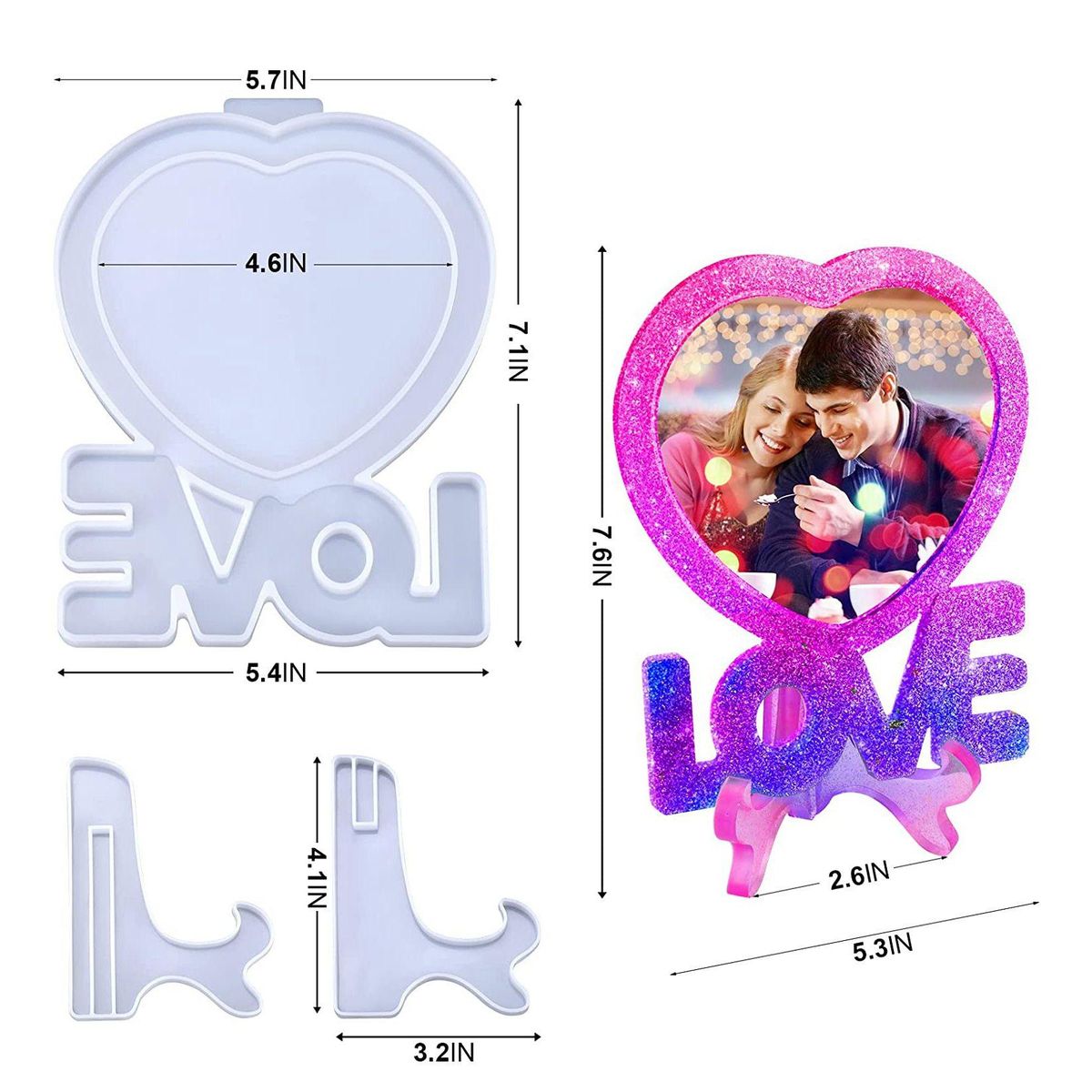 Package include - You will get 1 pc photo frame resin molds, size is 7.1x5.4 inch, 1 pair holder molds, size is 4.1x3.2 inch. Photo frame silicone molds with heart shape & "LOVE" Word. Perfect to DIY unique romantic picture frames for Valentine's Day