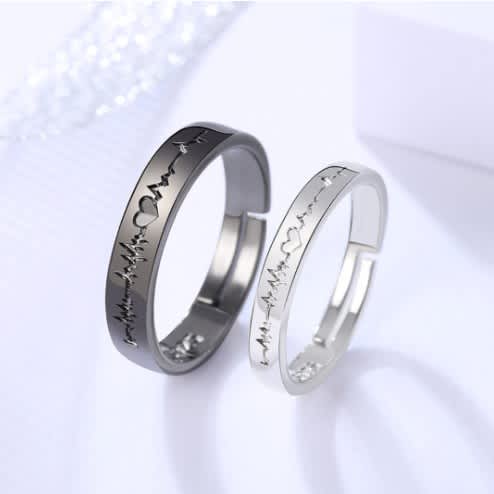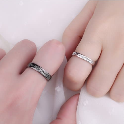 Buy Resizable Pair of Minimalist And Personalized Wedding Rings - White And Black Love Electrogram - 9mm in Nigeria