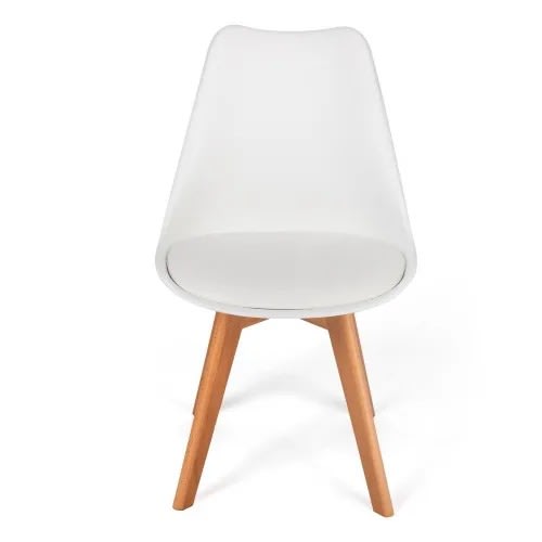 A natural wood, Eiffel-style base supports the plastic seat, while plush padding offers additional comfort and support.