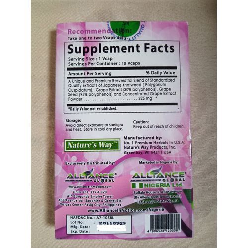 Restor Lyf is another product of Nature's Way, Springville, Utah, the budding wine industry in America. It contains Grape Seed Extract, Japanese Knotweed, Red Wine Extract; and Concentrated Red Wine Powder.