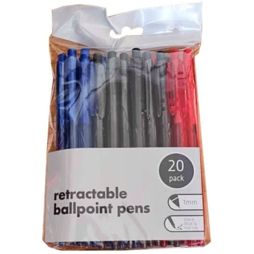Buy Retractable Ballpoint Pens - Black, Blue & Red Color -Pack Of 20 in Nigeria