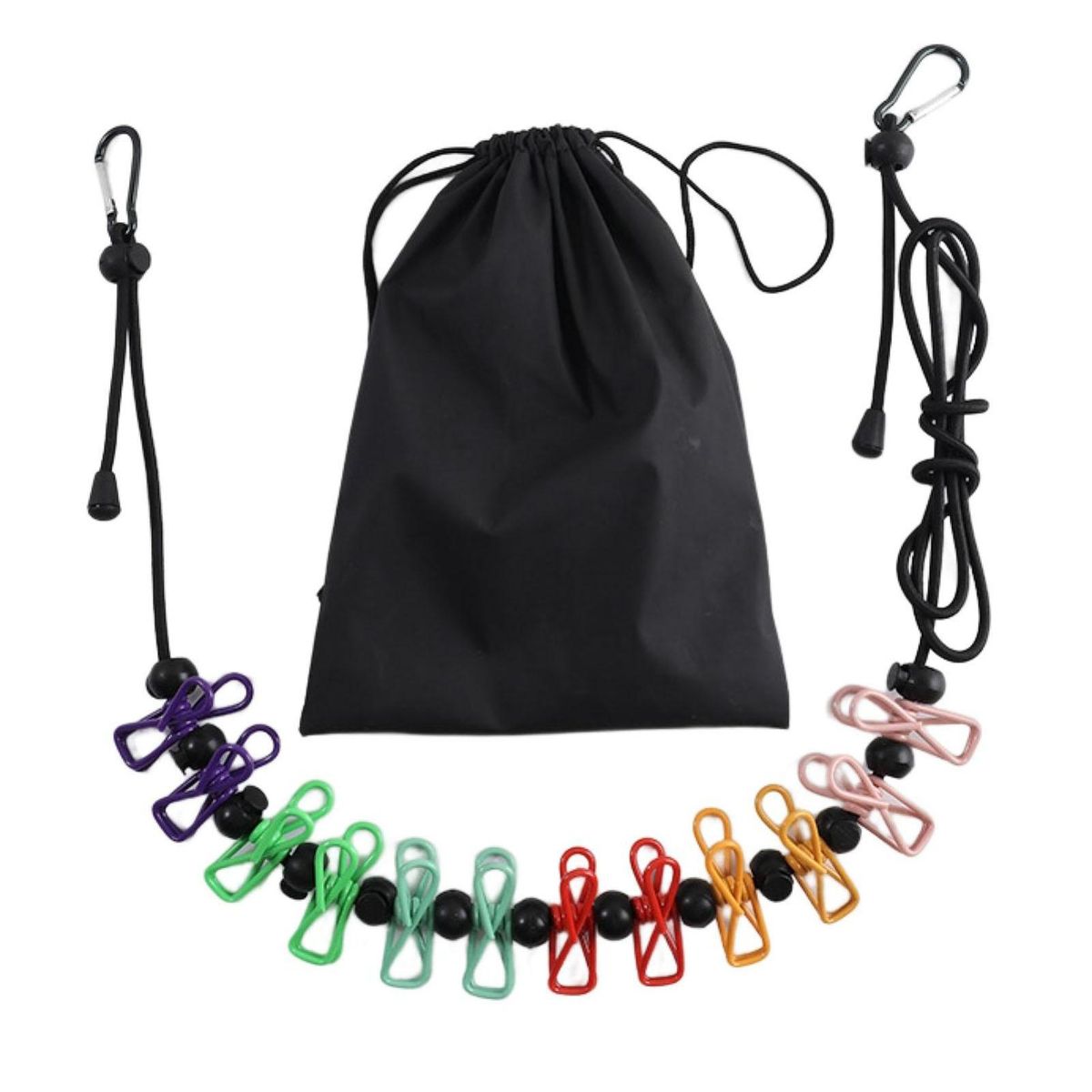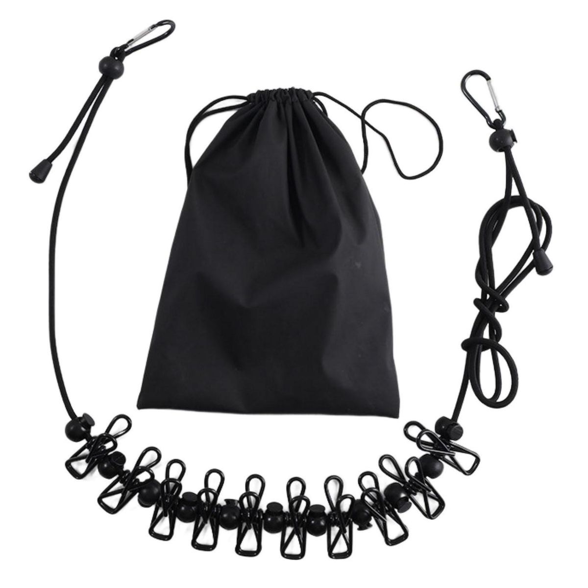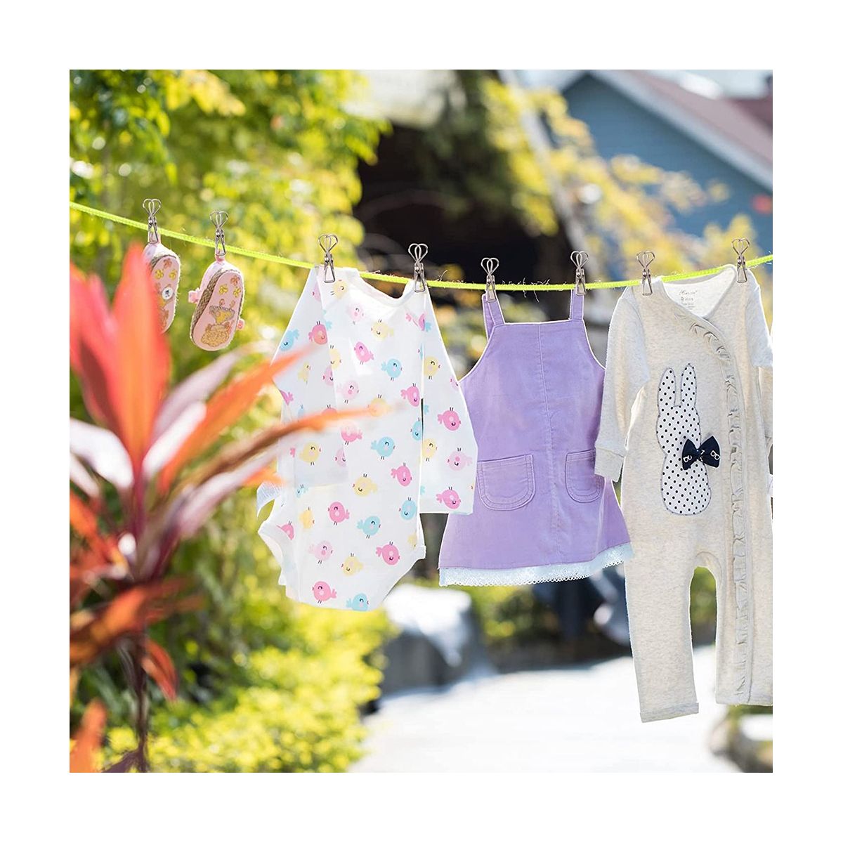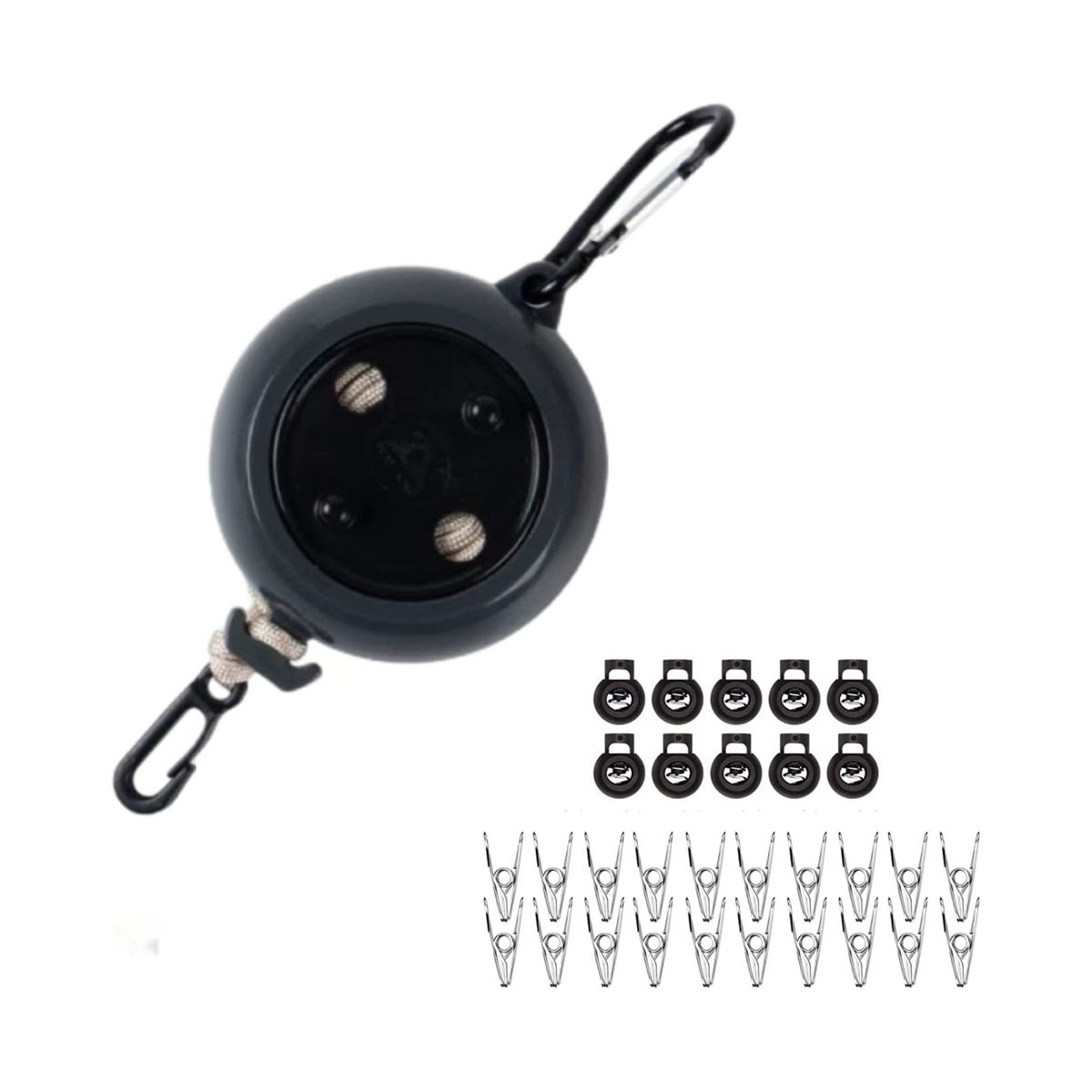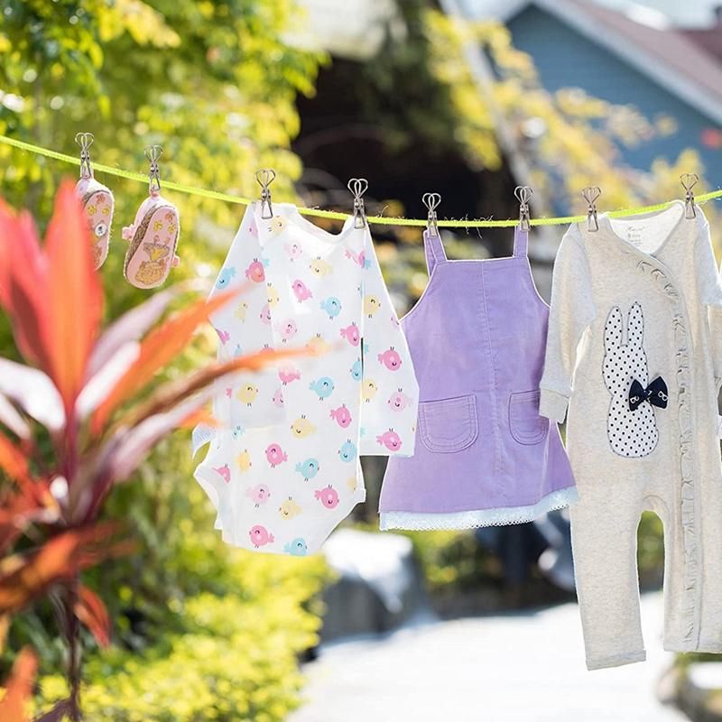 1 camping clothesline 10 retaining buckles 10 clothespins the retaining buckle design prevents clothes from slipping off and overstuffing Sturdy stainless steel clips keep clothes from falling out