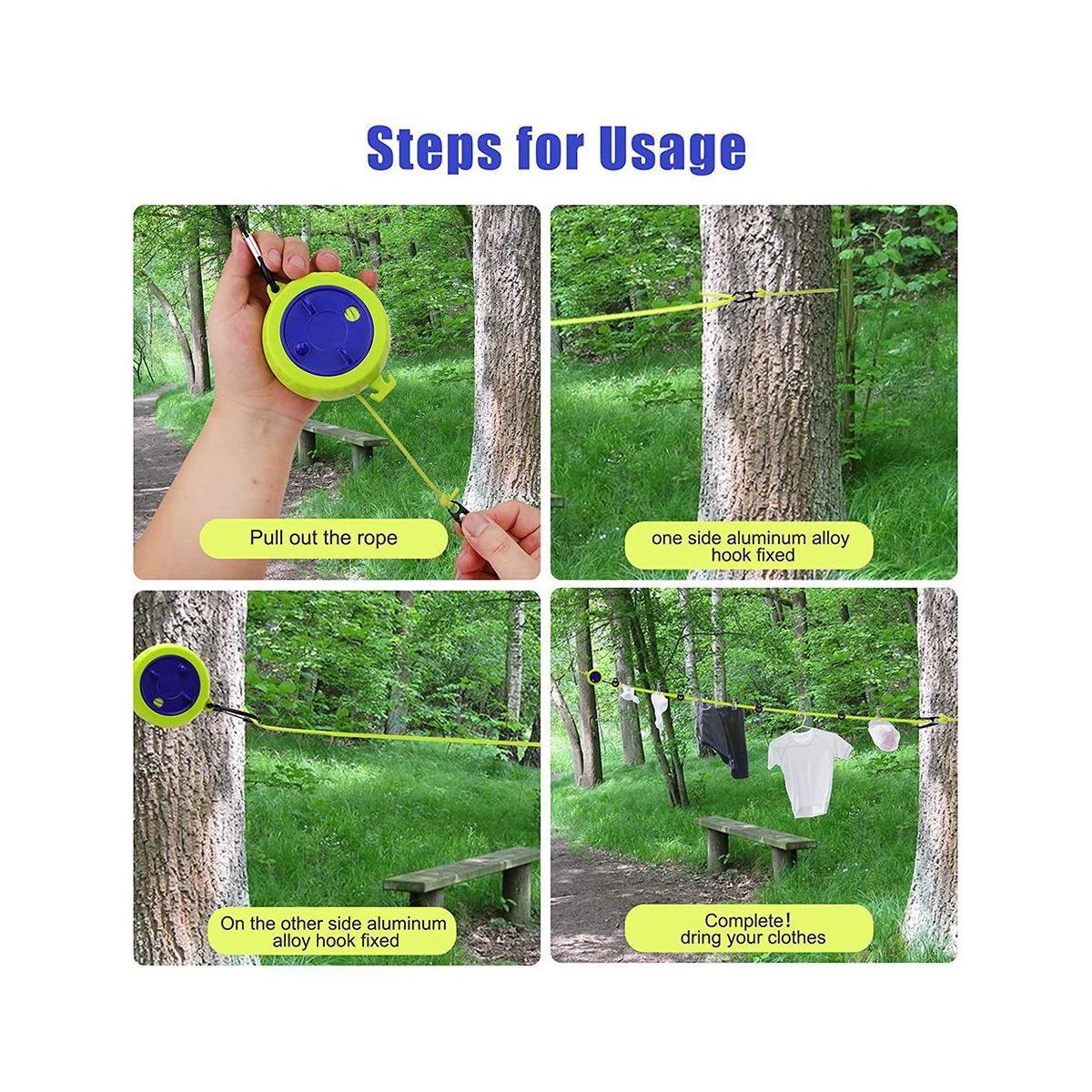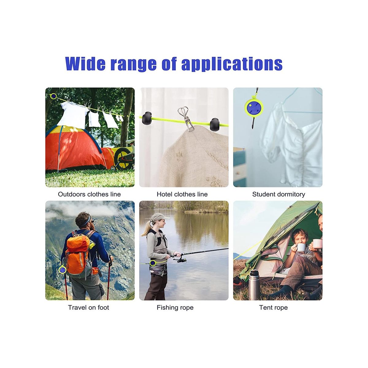 Wide usage and easy to carryAdjustable clothesline compact design light weight very convenient to carry not only can be used outdoors but also can be used at home school business trip outdoor clothes drying outdoor drying quilts and travel clothes drying Dry daily life college dorm hotel laundry and more to solve your laundry problems