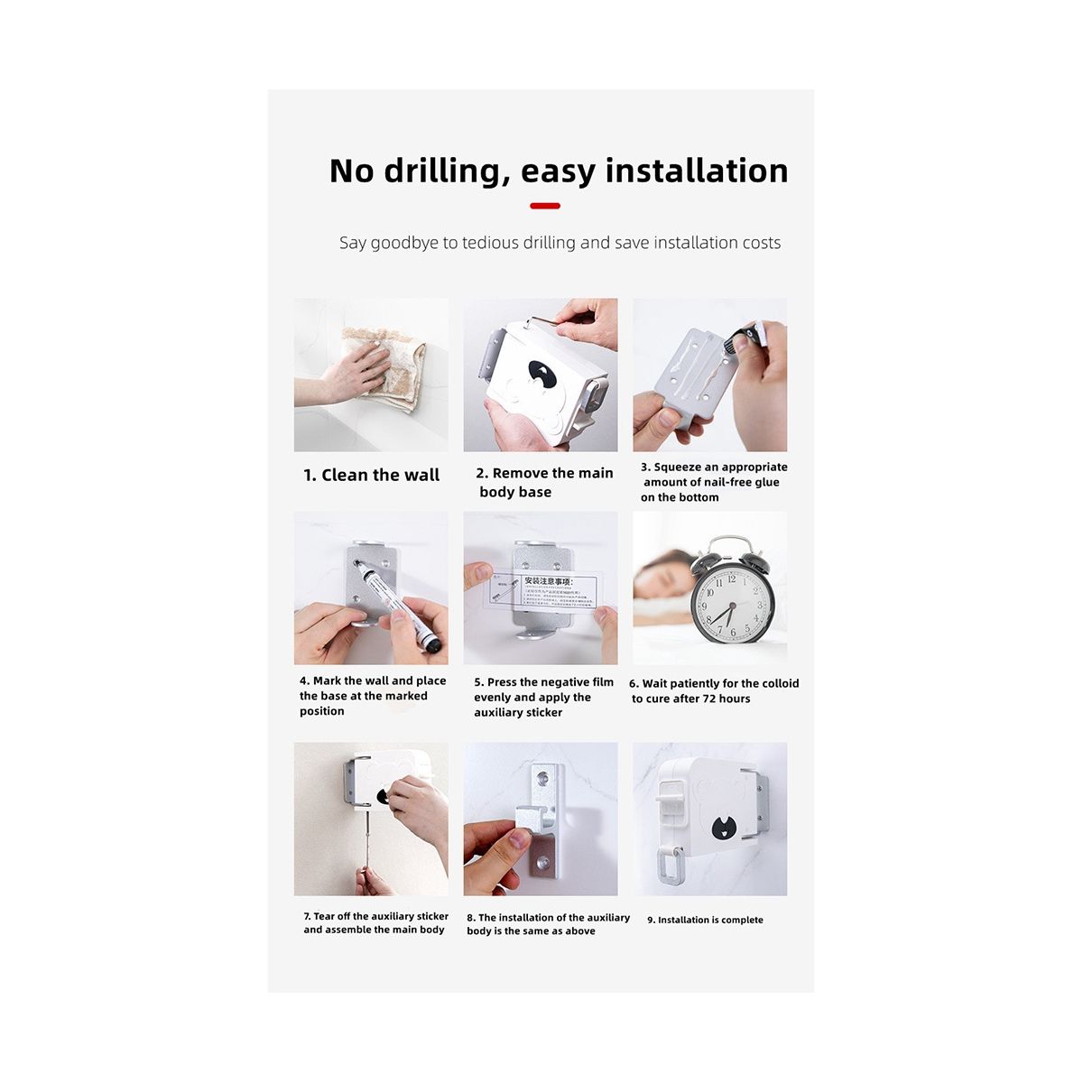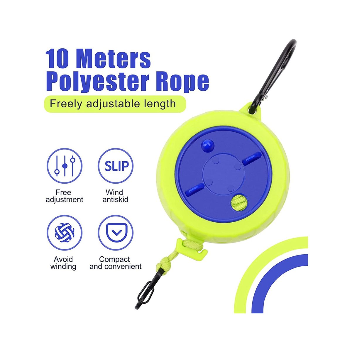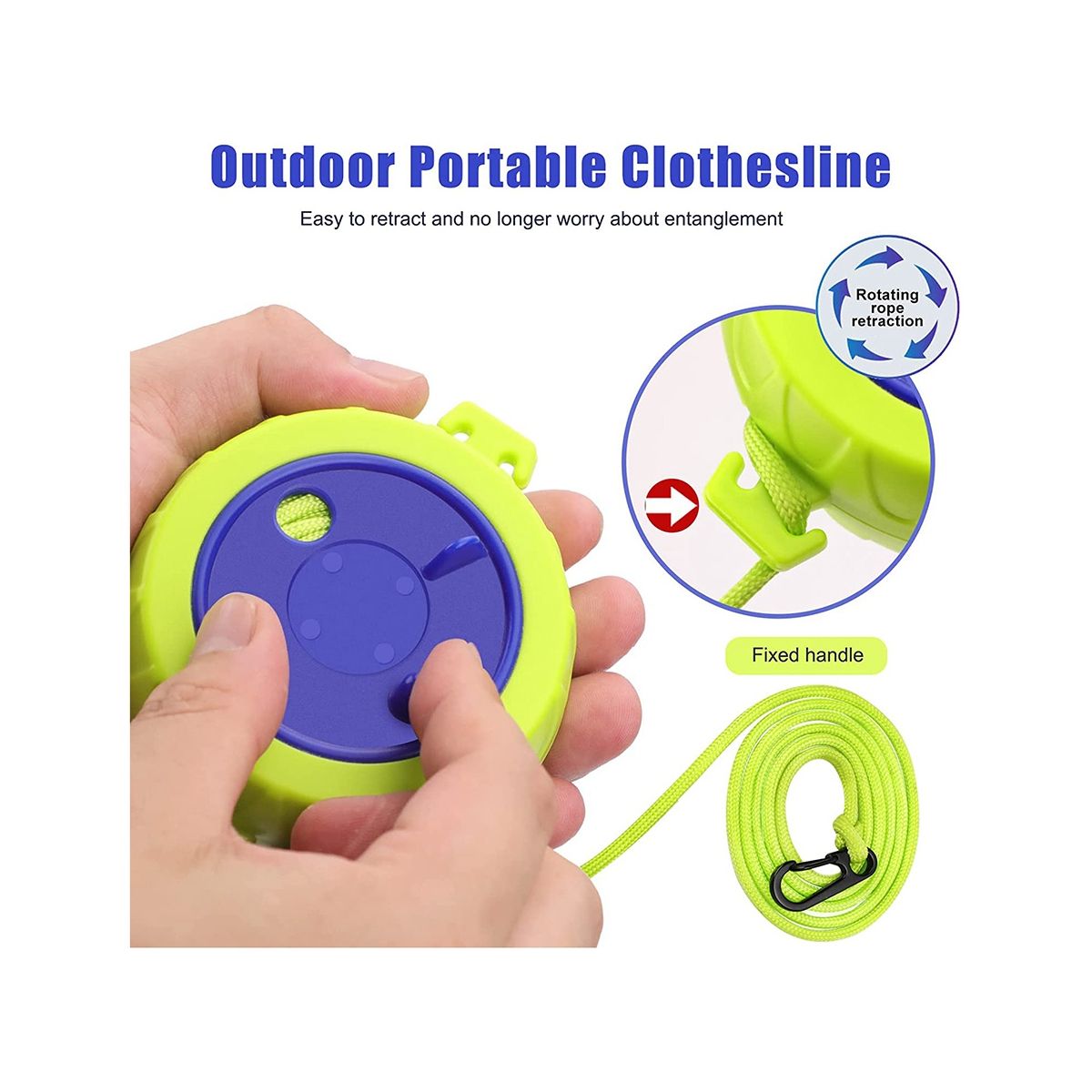Anti-Tangle & Attachment Handle DesignThe portable trunk line has a built-in swivel disc After use the cord can be easily retracted by twisting avoiding the tangle of ordinary laundry lines The fixed handle design can freely adjust the rope to the desired length