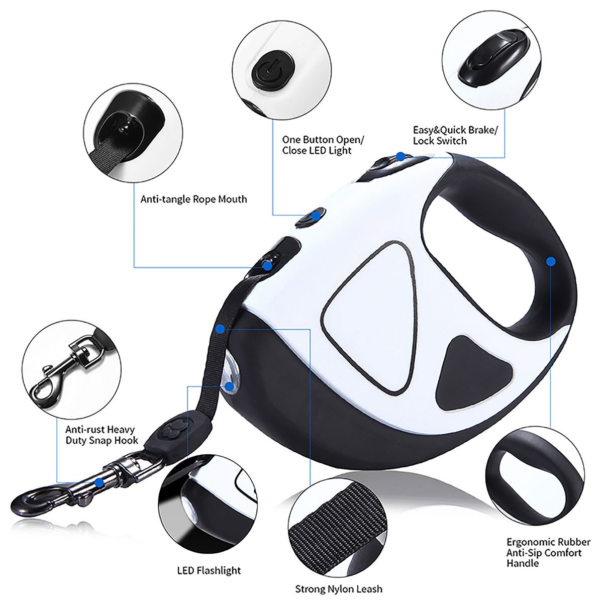 Easy Control: One-touch brake and lock security system allows the leash to easily adjust to a comfortable length and release or stop your pet at the touch of a button.