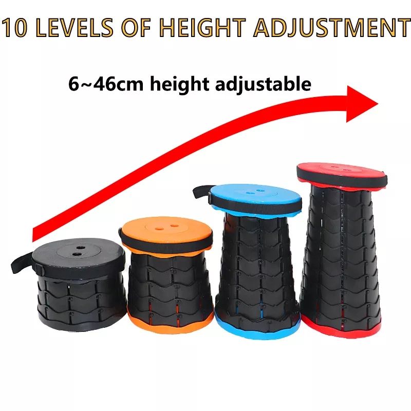 Adjustable Height - The beauty of the collapsible/retractable stool is that its height is adjustable, and with some skills, the height could be adjusted continuously. This makes it perfect for both adults and kids.