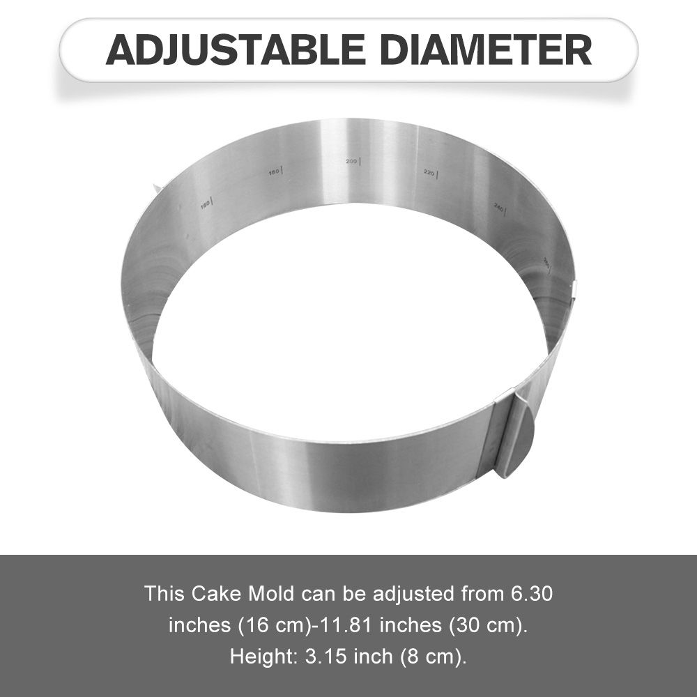 HIGH-TEMPERATURE RESISTANCE: High-quality stainless steel, great high-temperature resistance, and safe for food contact. WARM TIPS: When you adjust the size or wash the product, please don\'t put your hand on the edge of the cake mold.