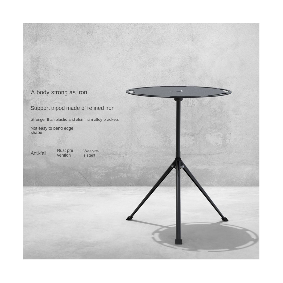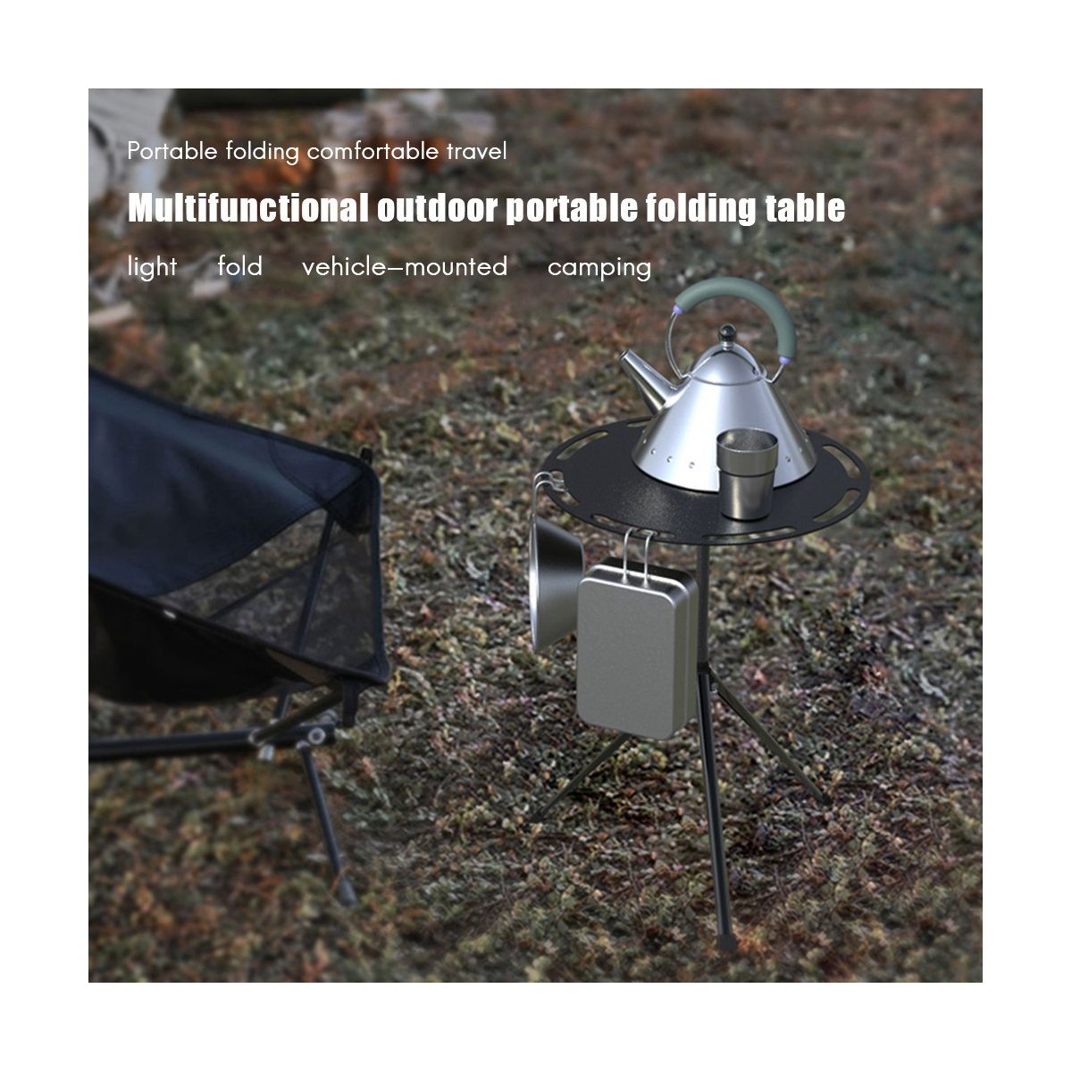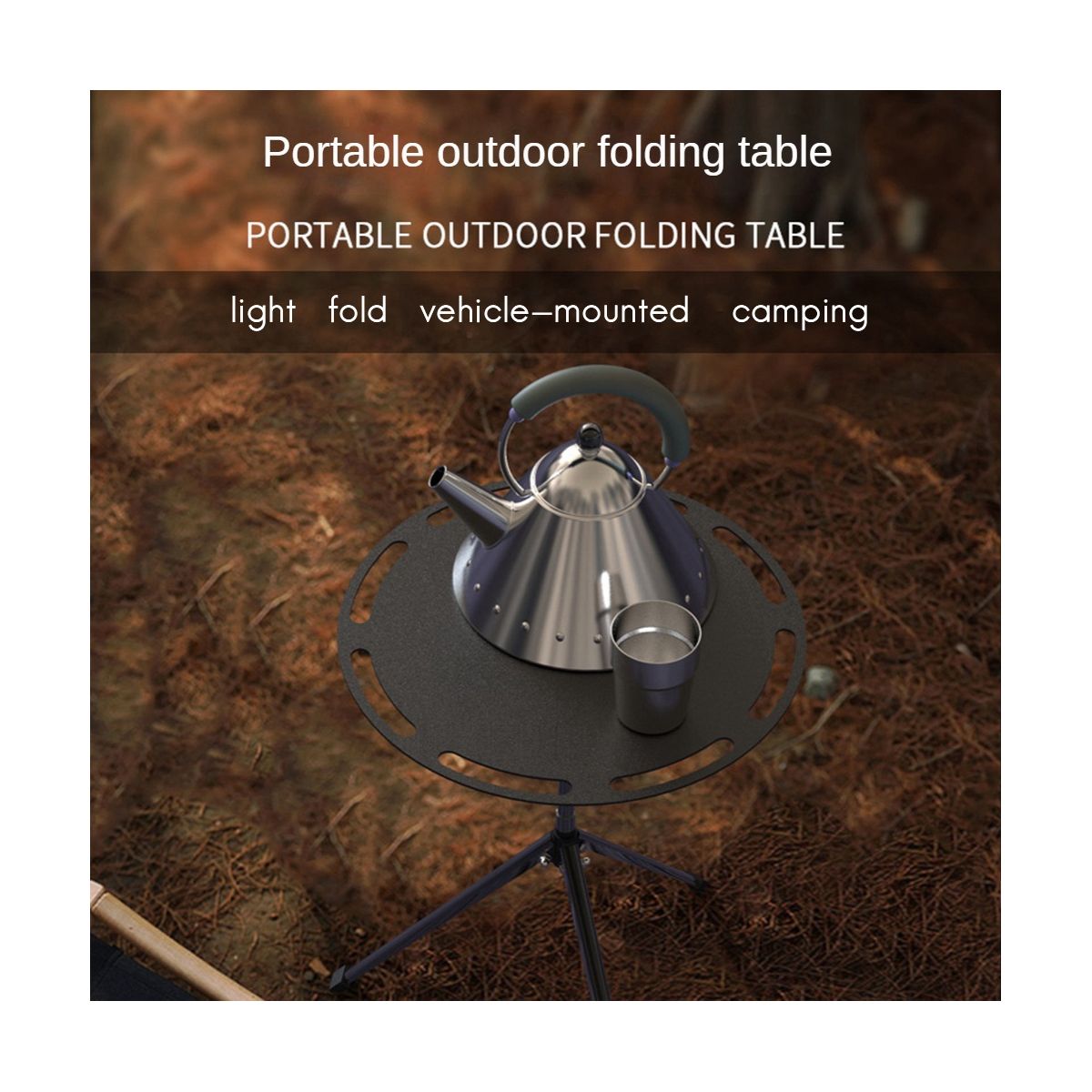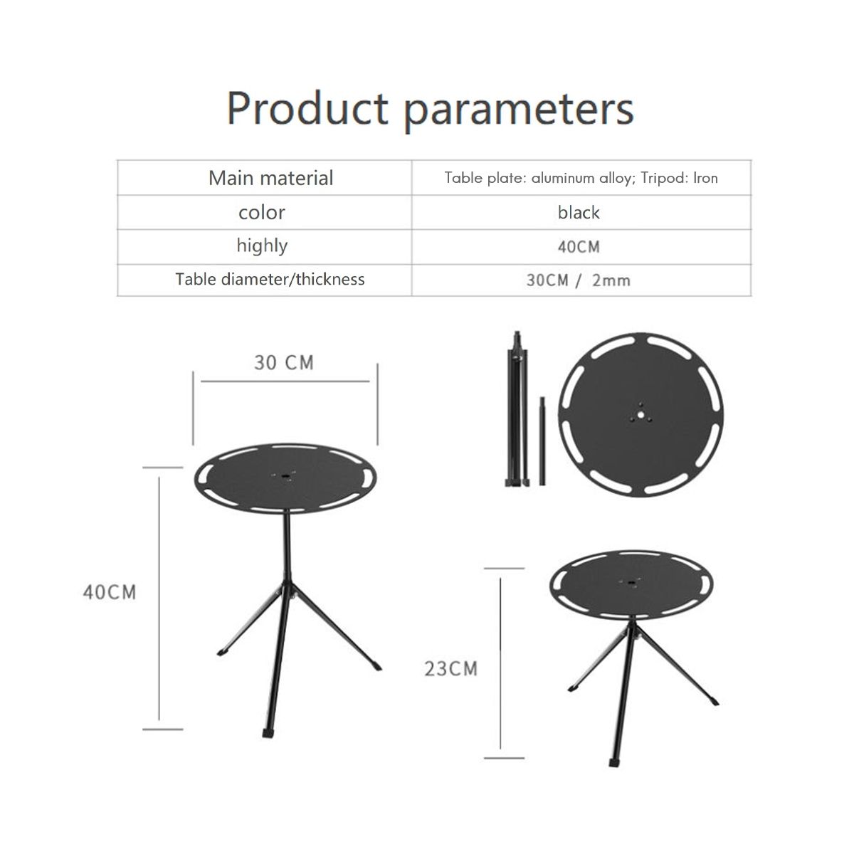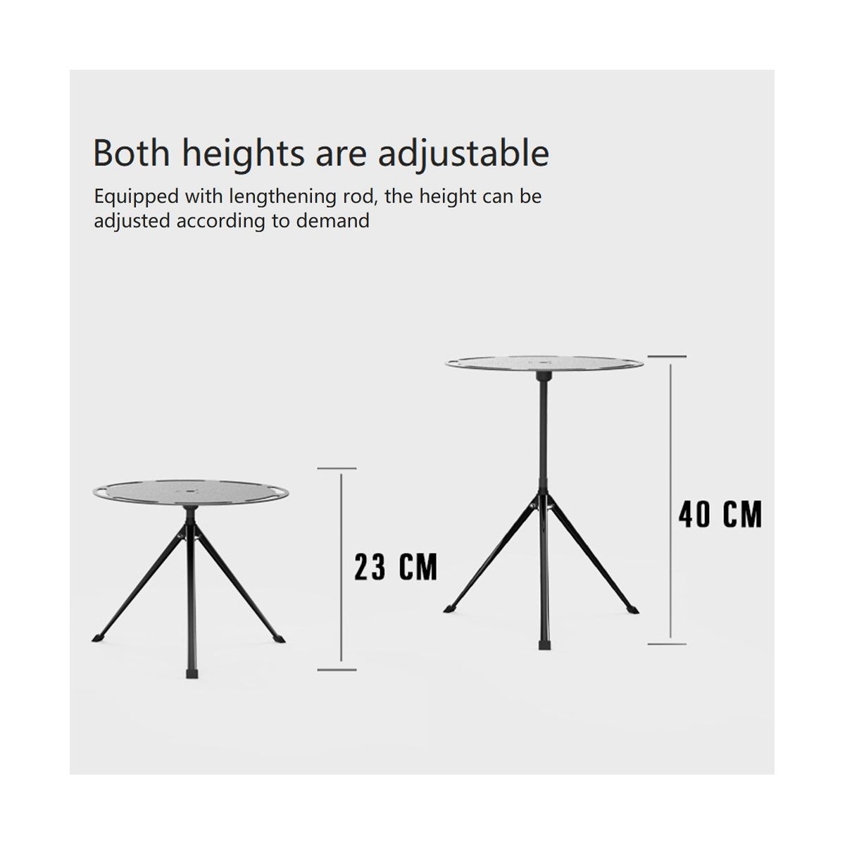 Outdoor folding table, light folding and comfortable appearance, adjustable height for car camping, supporting tripod made of pure iron, stronger than plastic and aluminum alloy and not easily deformed.