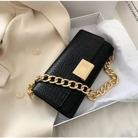 Buy Retro Chain Crocodile Shoulder Handbag - Black in Nigeria
