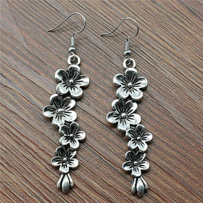 Buy Retro Daisy Flower Drop Earrings For Women Girl Ethnic Antique Silver Color Blossoms Petals Small Dangle Earrings Lovely in Nigeria