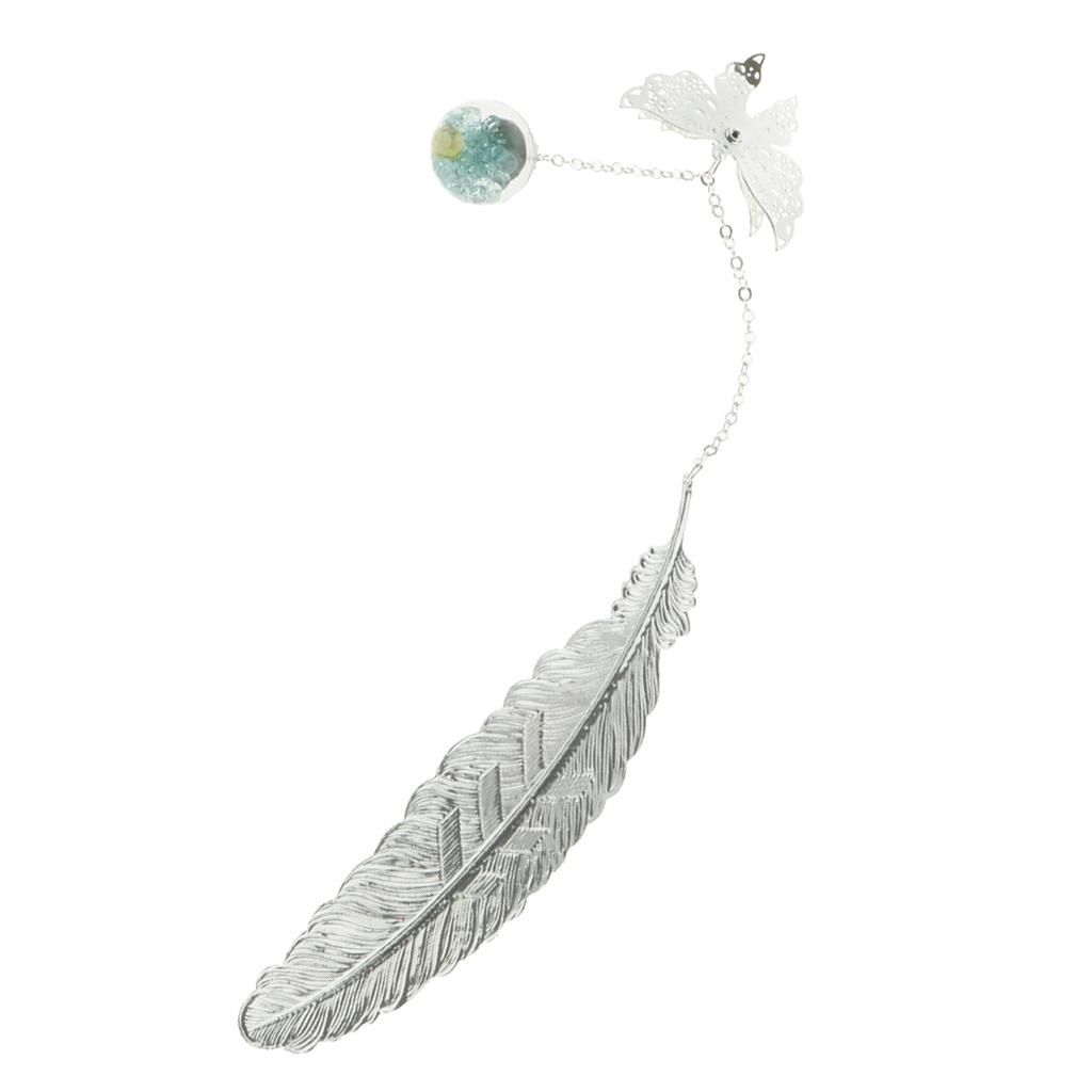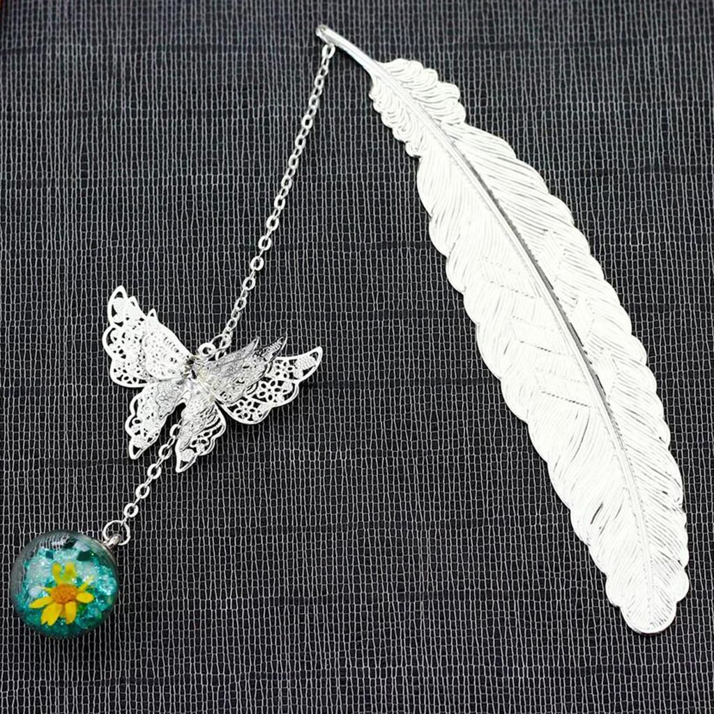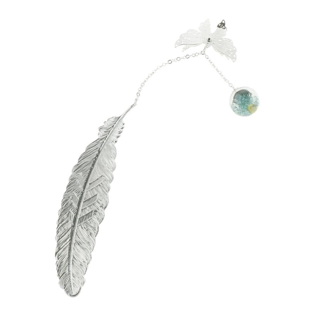 Feather Shape Bookmark with Butterfly Pendant Metal Creative Bookmark Stationery Mark - Gift Box Set