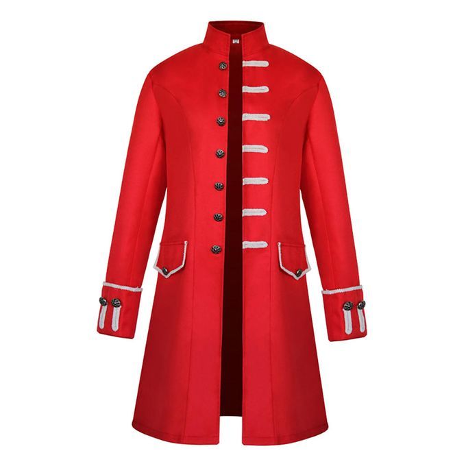 Buy Retro Men Gothic Solid Jacket Long Frock Coat Steampunk XL Red in Nigeria