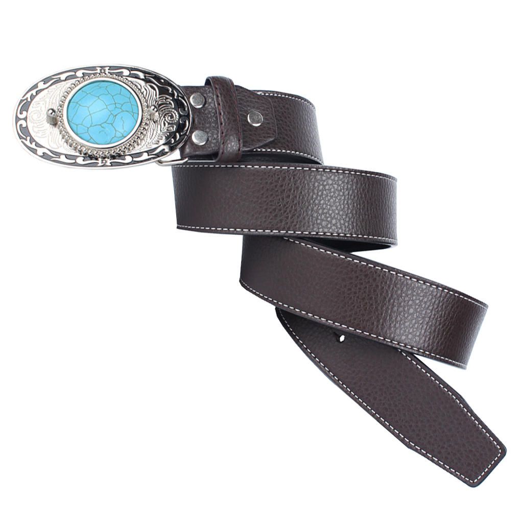 Vintage western cowboy Leather belts for women menIncludes turquoise stone, carved pattern metal buckle,and a long beltAdjustable,you can adjust it in your size easily and it is long enough for most of peopleMaterial: Pu Leather, Zinc alloy, it is soft and comfortable to wearBelt Length: approx. 120 cm/ 47.24 inch, Belt Width: approx. 3.8cm/1.49inch Buckles size: approx.9.3 x 6.5 cm/ 3.39 x 3.66inch