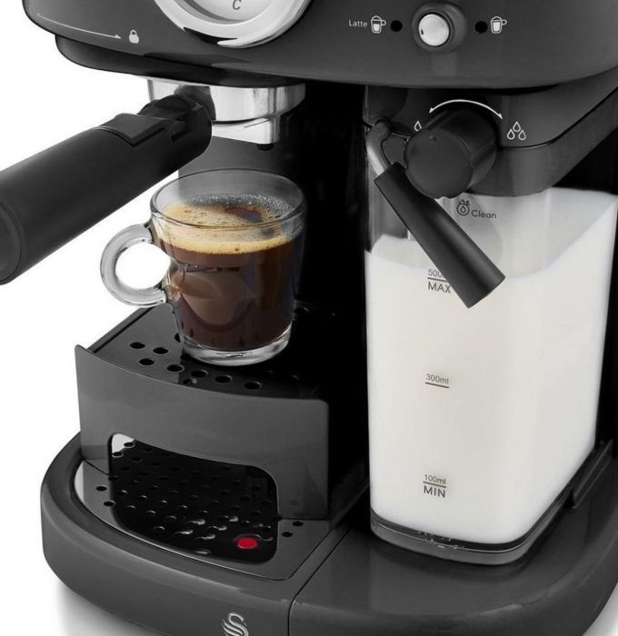 Stylish Retro Design - part of the award-winning Swan Retro range, this semi-automatic coffee machine with its vintage retro design in grey with stylish chrome accents makes a stylish addition to any kitchen.