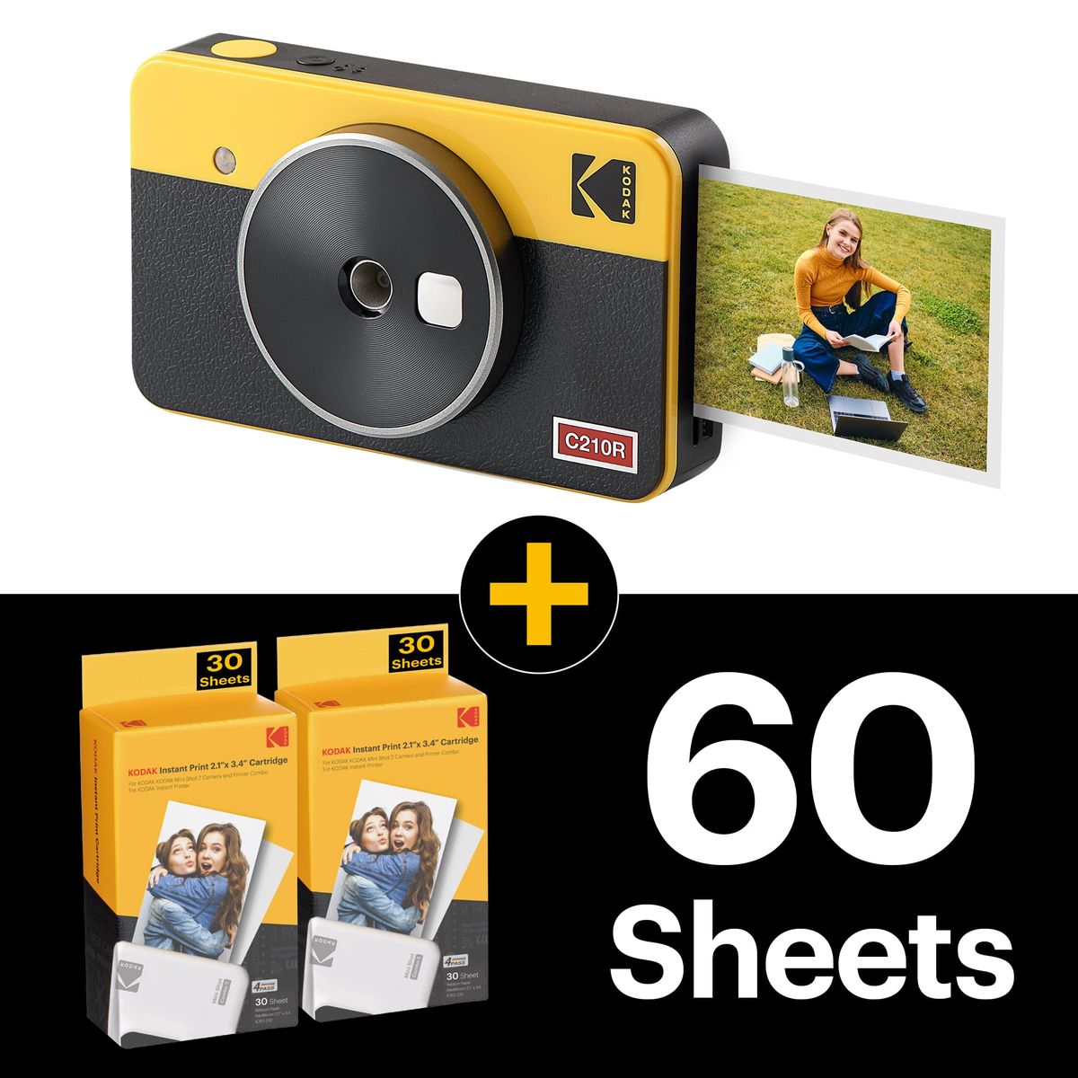 Kodak Mini Shot 2 Retro - 60-Sheet Bundle - Portable Wireless Instant Camera & Photo Printer, Compatible with iOS & Android and Bluetooth Devices, Real Photo (2.1x3.4) 4Pass Technology - Yellow