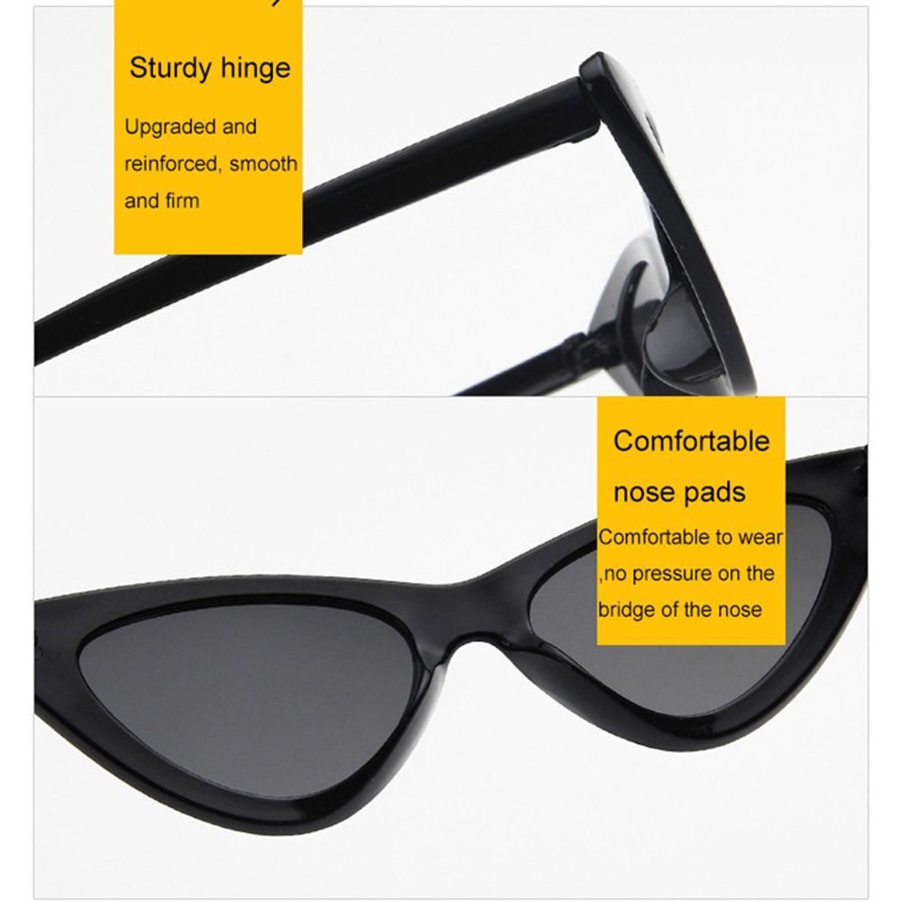 Description:UV protection: UV eye protection effectively filters and blocks glares; Great for driving and outdoor activities; High-definition lens gives you a natural & clear vision.Fashion design: Retro cat eye sunglass features a slim design. Complete with neutral colored lenses, the stylish sunglasses is the must-have accessory to accent this season's outfits.Lightweight arm: Light-weighted and elastic arm gives you stress-free wearing experience.Skin-friendly nose pads: Skin-friendly materials. weight-free features enables you a long-time wearing without fatigue.Application: Great for outdoor activities, such as, hiking, camping, sporting, traveling and more.High grade material: Made from good quality resin, impact resistant, stylish and durable.Use: Suitable for women and men.