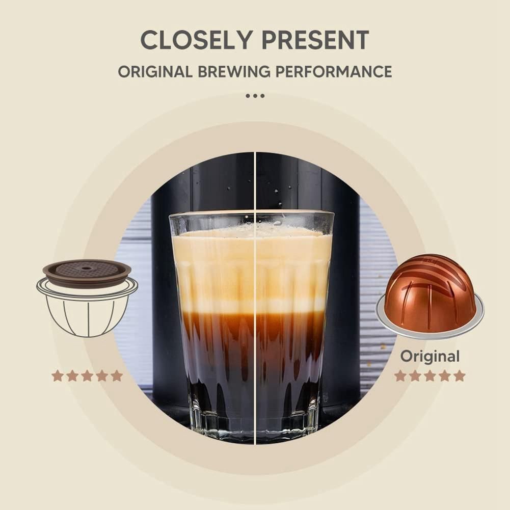 Lid: Because of its flexibility, allows you to reproduce the same extraction of original for Vertuoline pods, with guaranteed results in terms of taste and crema, the reusable cap will not damage your Vertuo machine.