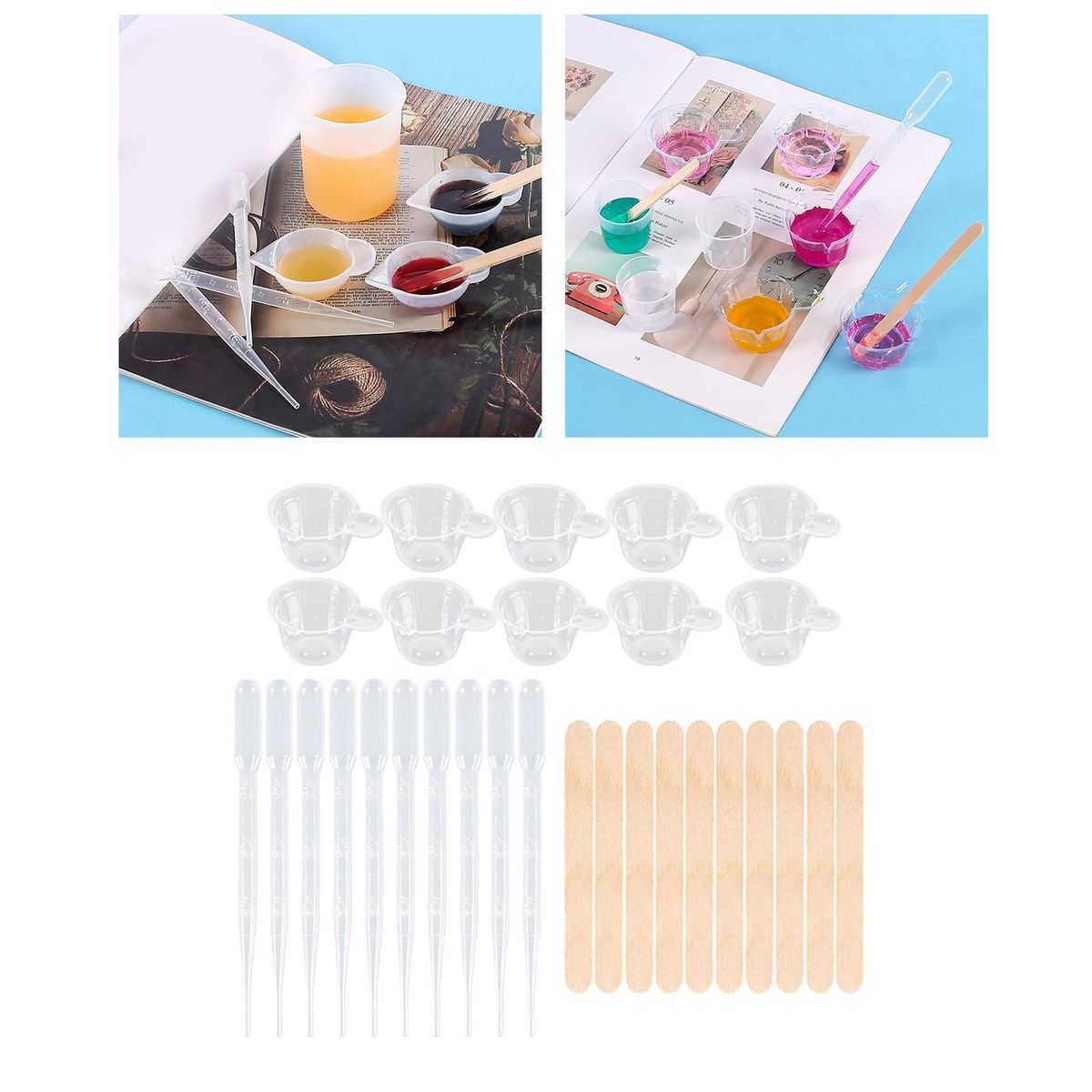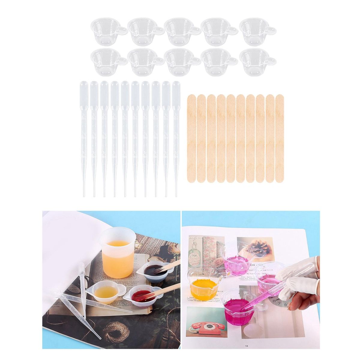 All in Resin Tool : Our Epoxy Resin Casting Tools come with 30PCS (10pcs droppers, 20pcs , 10pcs Mixing Cups); or 40PCS (10pcs finger cot, 5pcs droppers, 10pcs , 5pcs stir sticks, 10pcs stir spoon)