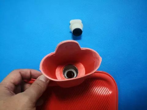 hot water and sealed with a stopper, used to provide warmth, typically while in bed, but also for the application of heat to a specific part of the body. Warm/hot water is a traditional source of pain relief. Wrap with a cloth cover to prevent scalding the skin. Do not use boiling water
