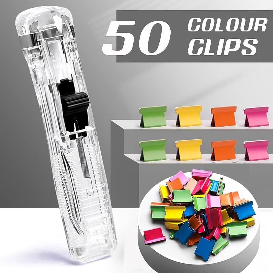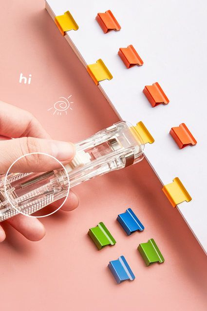 Reusable creative stapler: adopts a brand new binding design, changes the binding method that has destroyed the paper before, clips do not damage or mark the paper in the same way as paper clips or staples, all nails are recyclable, easy to remove, and can be used directly for the second time.