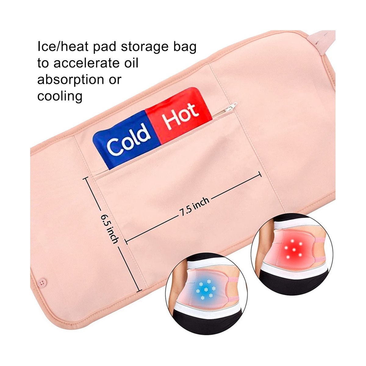 designed a special pocket on the outside of the castor oil pack into which you can p a hot pack to speed up the absorption effect of castor oil in the abdomen or a cold pack for better relief of muscle and joint pain.