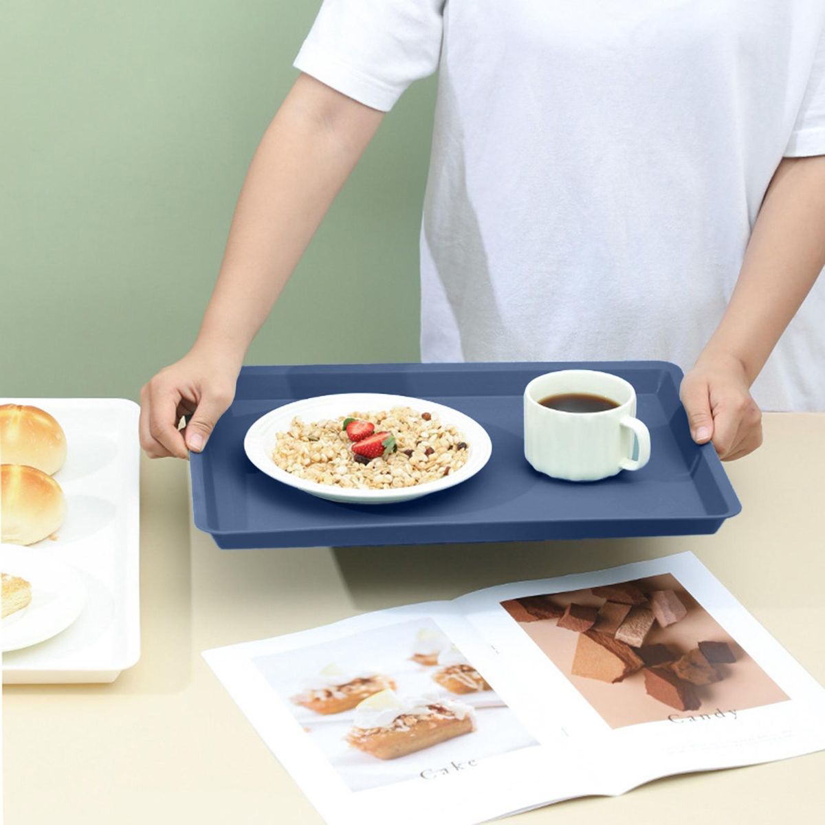 Available in four vibrant colors, our tray adds color to any setting. choose from white, blue, green, or pink to match your personal style or complement your existing decor. the sleek and modern design of this tray makes it a versatile addition to any home.