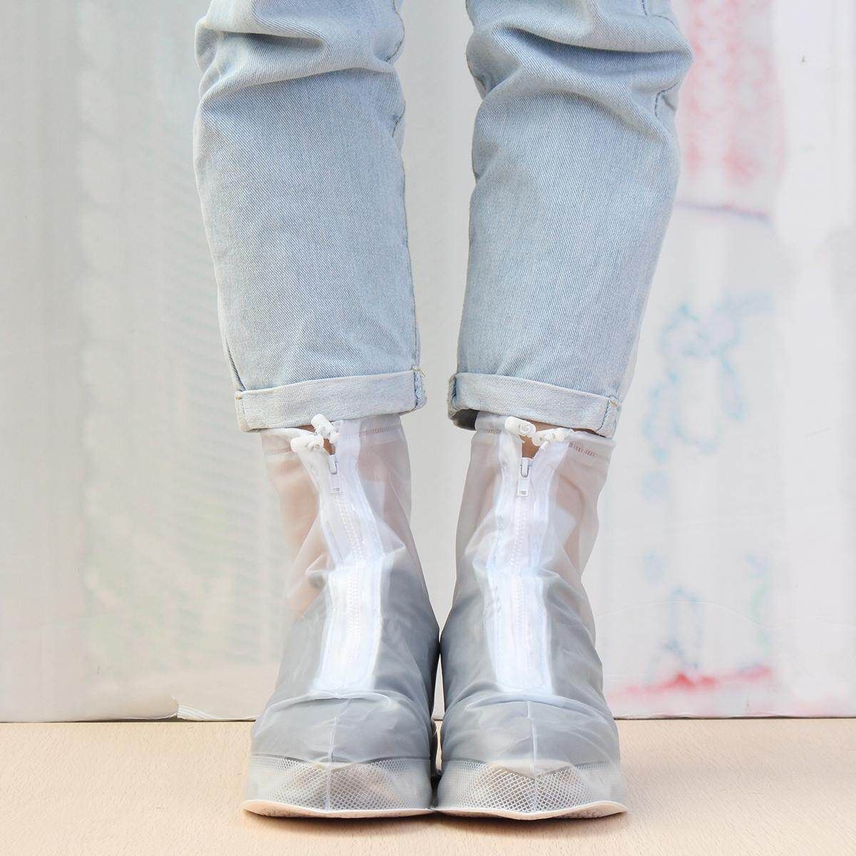 -Front zipper, buckle closure and elastic fabric design perfectly protect your shoes from rain water, mud splatters.