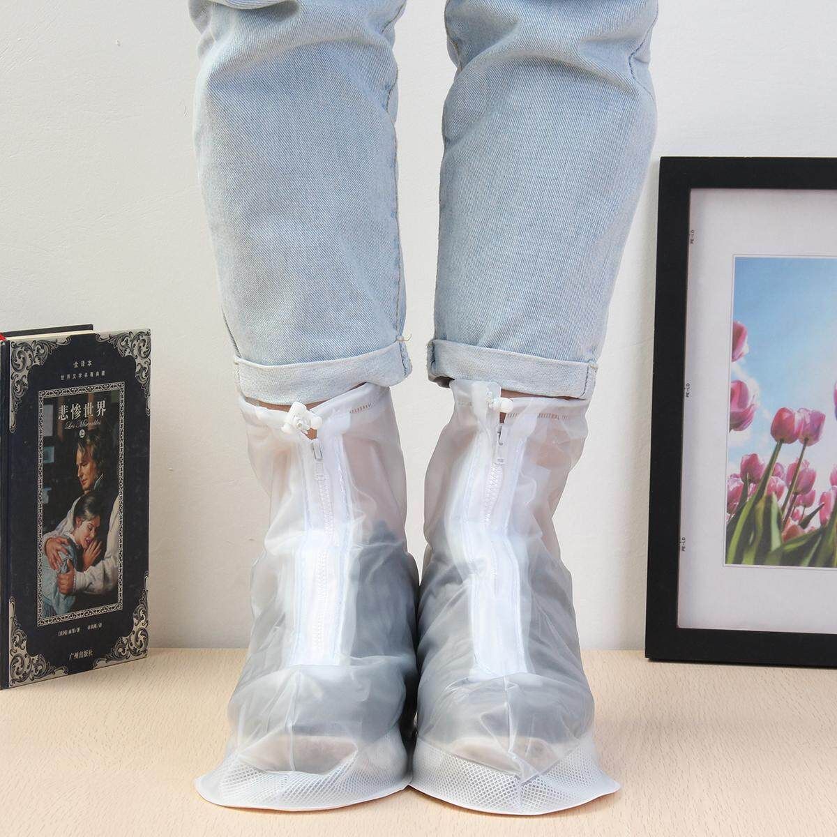 -Front zipper, buckle closure and elastic fabric design perfectly protect your shoes from rain water, mud splatters.