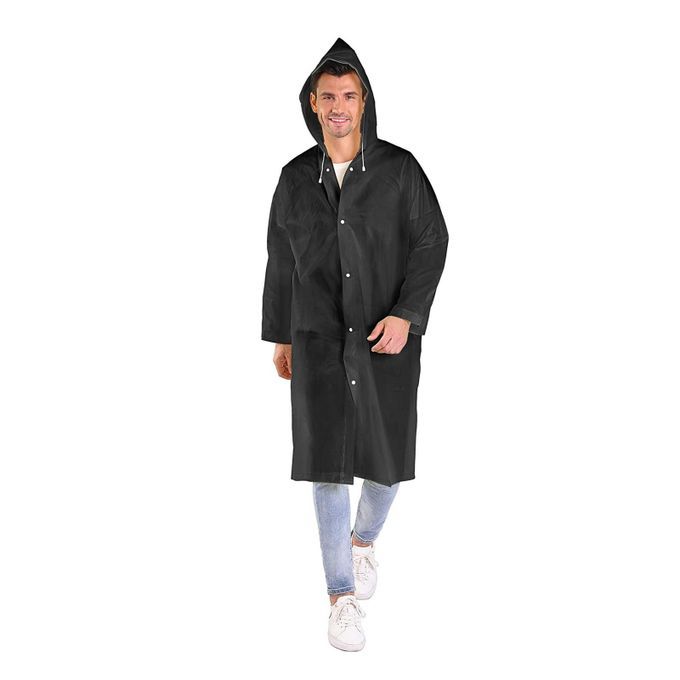 The windproof drawstrings at 2 sides of the hood can make the raincoat stay fixed on the head.