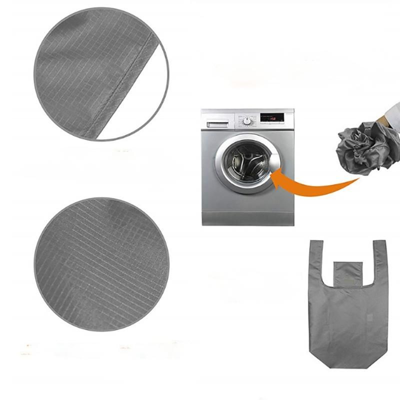 And these grocery reusable totes can be easily folded into the attached pocket-size pouch which takes up hardly any space that can be easily fit in a purse, fanny pack, pocket or the glove box of the car. Very convenient to grocery shopping and traveling.
