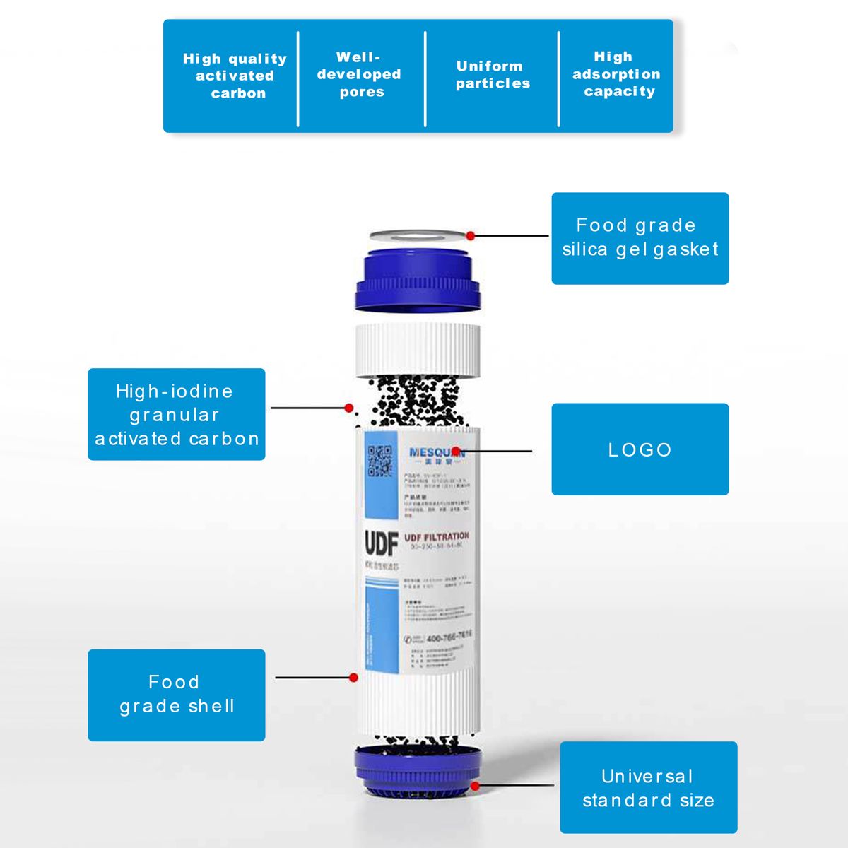 UDF GRANULAR ACTIVATED CARBON: Effectively adsorb residual chlorine, color, odor to improve water quality.