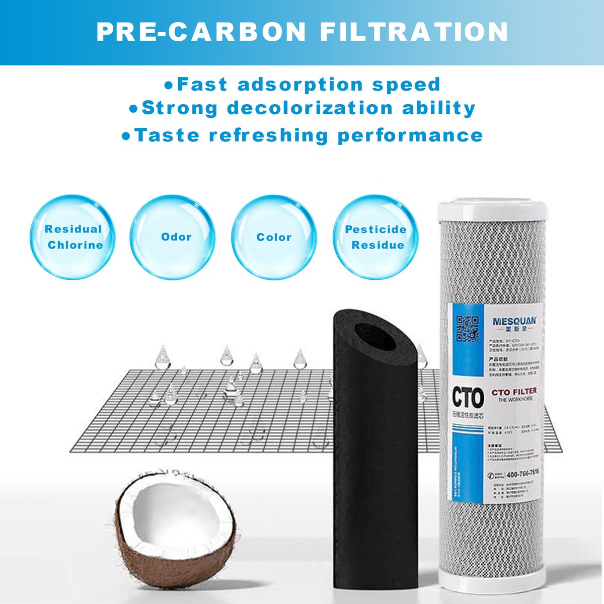 CTO COMPRESSED ACTIVATED CARBON: Boasts speedy adsorption rate, strong decolorization, and taste refreshing performance.