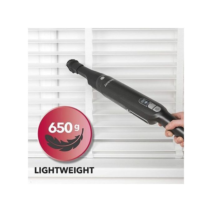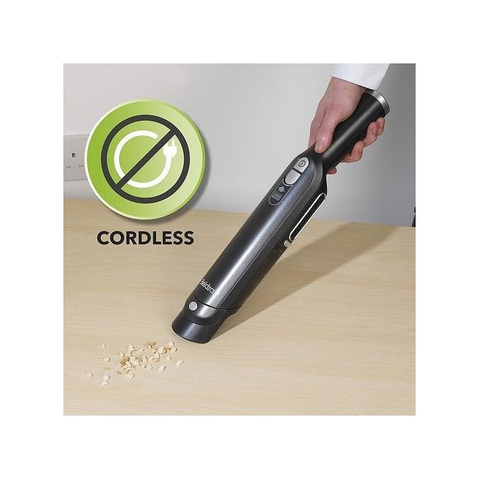 This handheld vac features a powerful 11 1V Li-ion battery dual speed with boost function and a 100ml easy to empty dust container