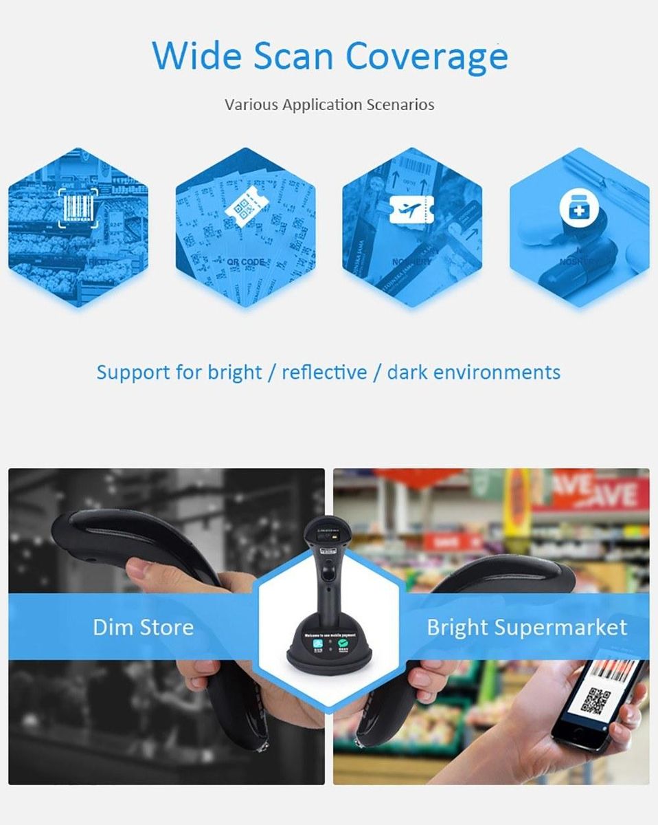 Buy RF1000G Wireless Barcode Scanner Handheld Wechat Scanner Reader for Mobile Payment Computer Screen Supermarket Retail Store Warehouse in Nigeria