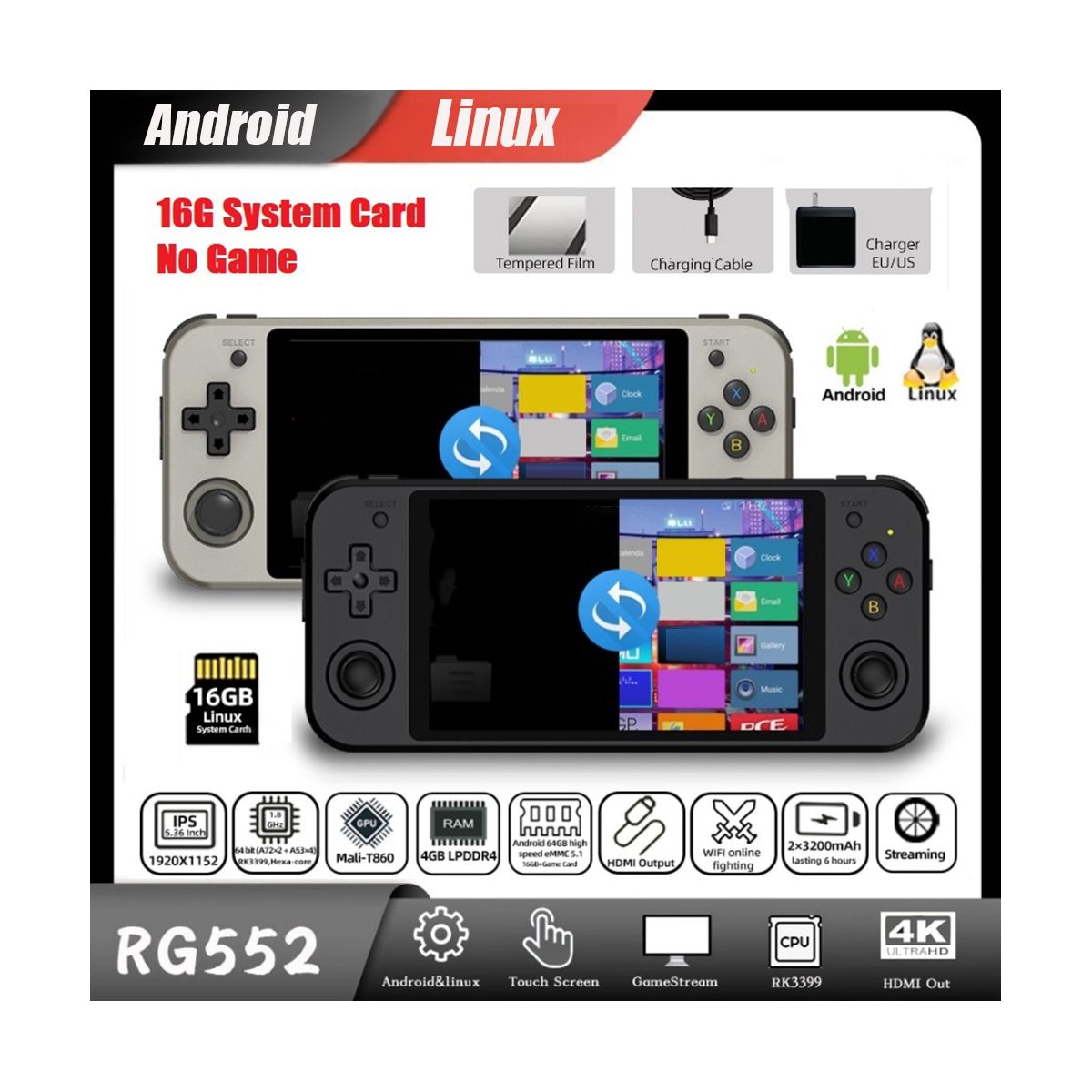 Memory: Android high speed eMMC 5.1 (this version has no games), linux 16GB TF, Support dual TF card expansion