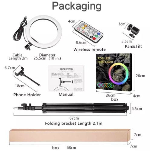 Buy Rgb 10 Inches Selfie Ring Light 26cm With Stand - 2 Remotes For Selfie And Light Control in Nigeria