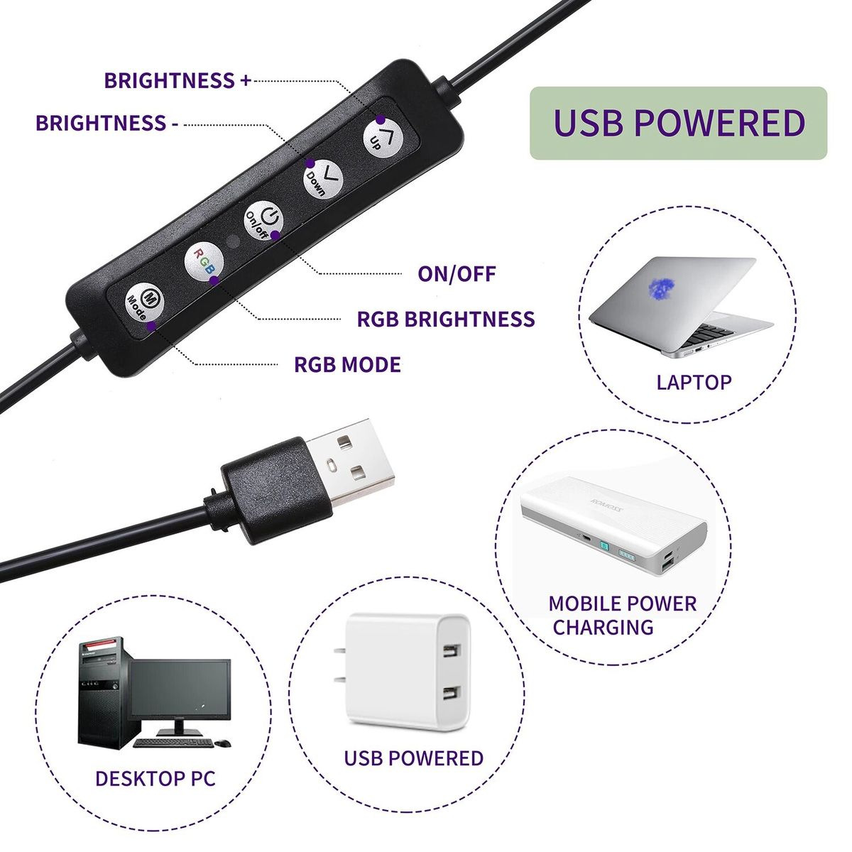 Flexible & Rotatable Phone Holder; 1 USB charging ports for your smart phone charging while livestream. It's compatible with most smart phones with or without a case.