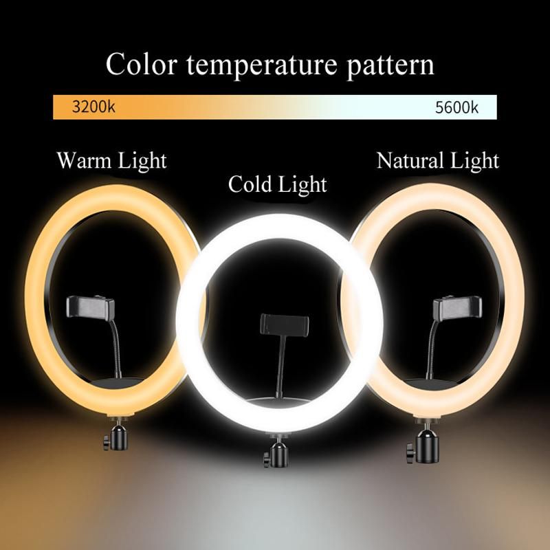 Adjustable Brightness Modes - Dimmable 14 inch ring lights with a wide dimming range from 1%-100% can provide you with perfect light and shadows to work, read or makeup. And 9 modes to meet all your needs of portraits, vlog, live streaming and selfie.
