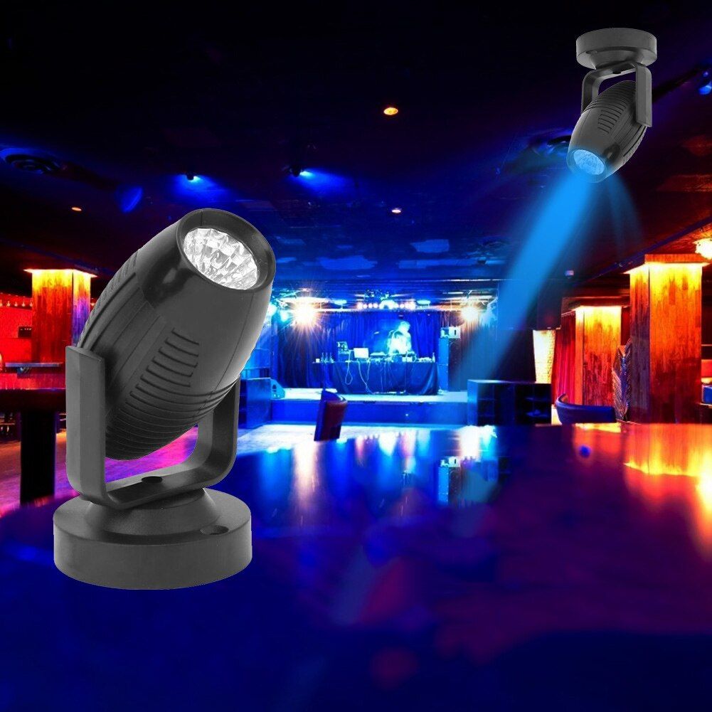 Specifications: Material: plastic Shell color: Black Light color: blue light, red light, green light, light, violet light. Power: 1W LED beads: 1 Input voltage: AC 85-265V 50/60Hz Working temperature: -5~45 C Life span: 1 years Plug: wiring Angle: 360 degrees Product size: 85*46*46mm Note: Confirm the supplied voltage is stable and required. Indoor use only, please do waterproof measures if outdoor use. Do not use it frequently under the humid atmosphere. Please do not look at the light directly, in case it might damage the eyes. 1 Watt LED single color beam spotlight with lens. It features soft luminescence, stabilization and continuity light, which is a perfect lighting source. Plug and Play, easy to use.With stand for adjusting lighting angle. Super mini size and light weight for convenient carrying. Ideal for indoor use, great used in Disco, Clubs, KTV, Pub, Bar, Banquet, weddings, family parties, etc. Package Includes: 1 X LED Stage lights 1 X Stage Spot Light