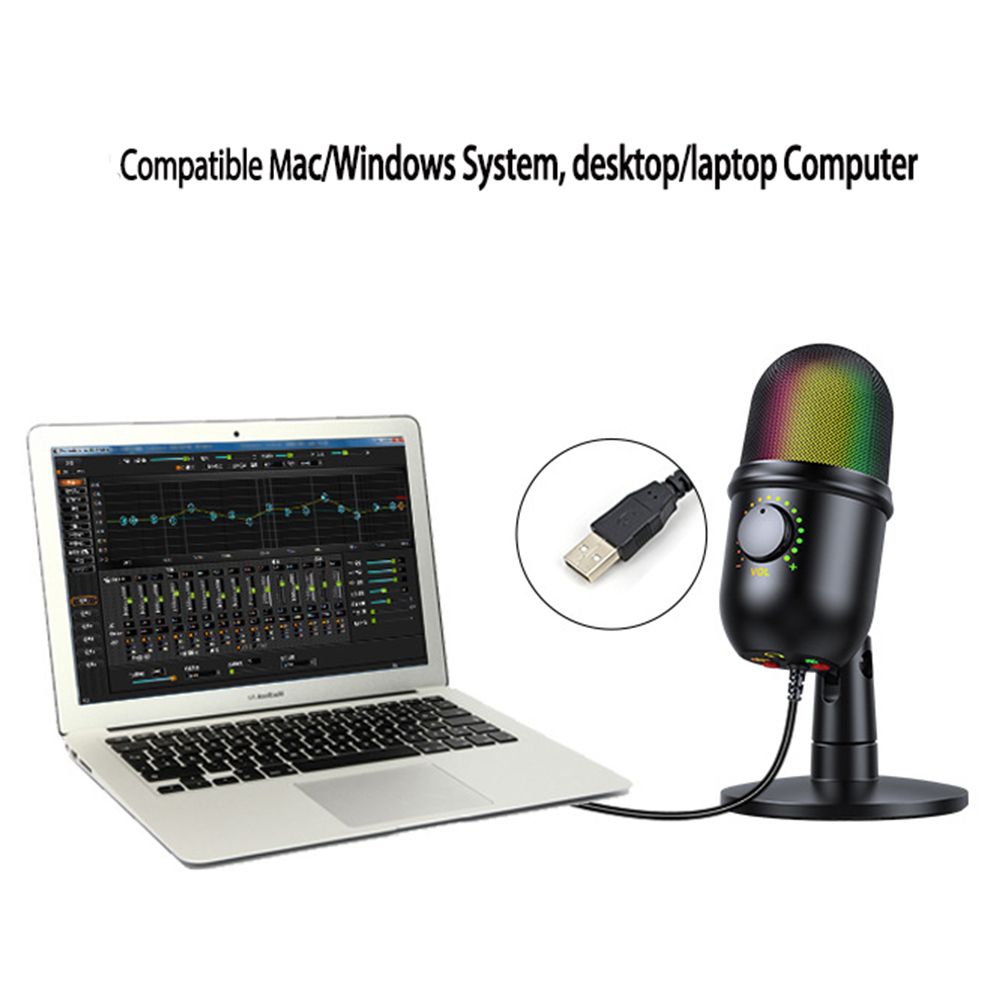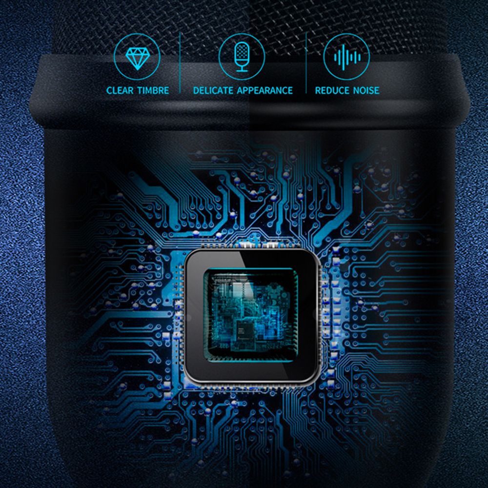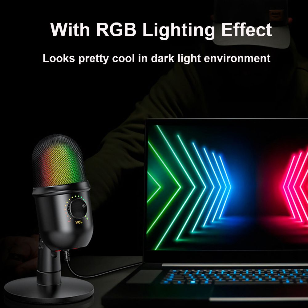 【RGB Cool Lighting Effects】With dazzling dynamic RGB lighting effects, which makes the microphone look pretty cool in dark light environment, suitable for live streaming, online game, singing, etc.