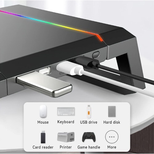 Rgb Gaming Computer Monitor Stand Riser With Drawer /Storage And Phone Holder