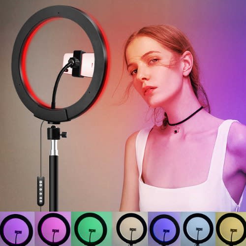 1. Adopts high quality LED beads, super bright, suitable for live broadcast, selfie, makeup, etc.2. Made of aluminum alloy, the shell has excellent heat dissipation performance, lightweight, durable and wear-resistant.3. Support warm white light, warm yellow light and white light adjustable, You can adjust as you want according to the scenes to get different shooting effects.4. Equipped with a mobile phone clip with a 360 & deg; adjustable metal tube, you can adjust it to get optimum angle.5. With an interface that diameter is 1.6cm at the bottom, which can mount onto tripod in same size.