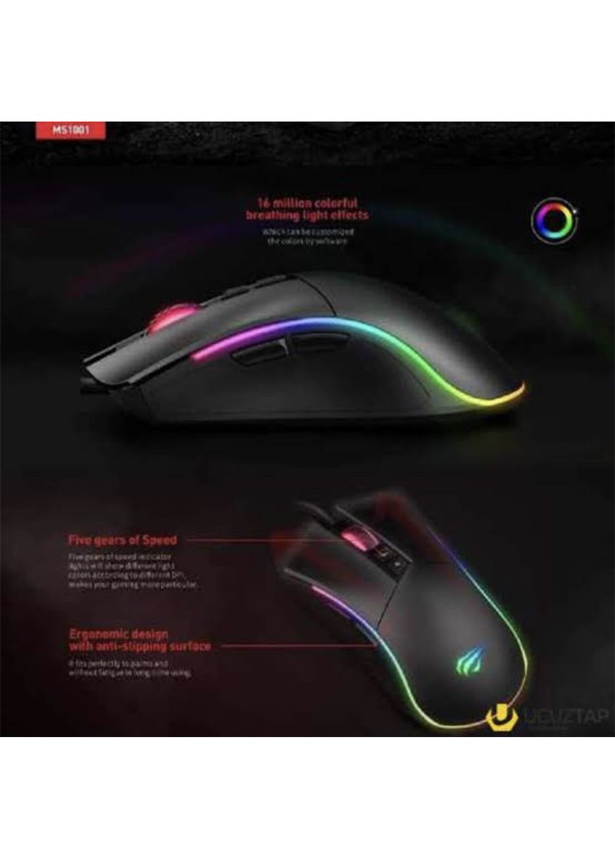 Model - Havit MS1006 RGB, Type - Wired Gaming Mouse, Connectivity - Wired, Wheel - Yes, Feature - RGB Backlit Gaming Mouse, Four gears OF ADJUSTABLE DPI SETTINGS (1000-1600-2400-3200DPI) ENABLES FREE SWITCHING IN GAME, Warranty - 1 year, Others - Color: Black, Interface Type: USB, Key number: 7, Resolution: 1000-1400-2400-3200DPI, Keystroke life: 3,000,000 times, Cable length: 1.5m, Size: 125 x 70 x 40mm, OS Supported: Windows 7, 8, 10, Vista, XP, 2000, Mac, Linux, Specialty - ERGONOMIC DESIGN, WITH ANTI SLIPPING SURFACE, IT FITS PERFECTLY TO PALMS WITHOUT FATIGUE DURING LONG TIME USE