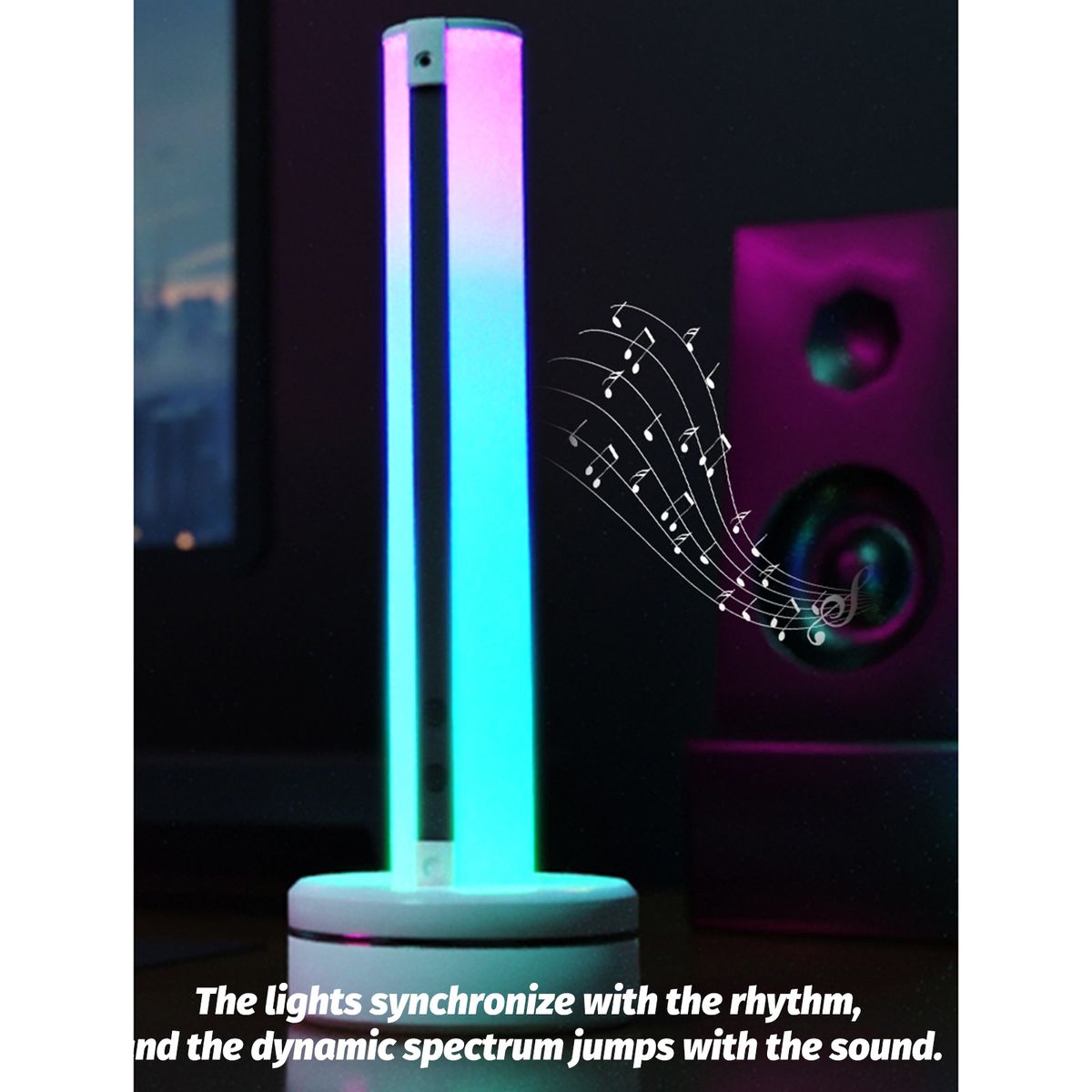 Respond to music/noise by picking up ambient sounds. The lights synchronize with the rhythm, and the dynamic spectrum jumps with the sound. You can choose any music to accompany.