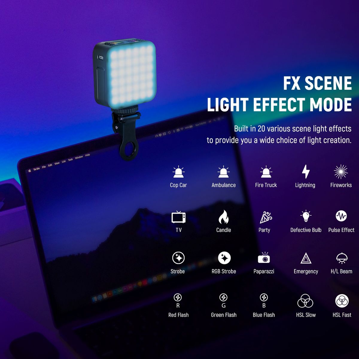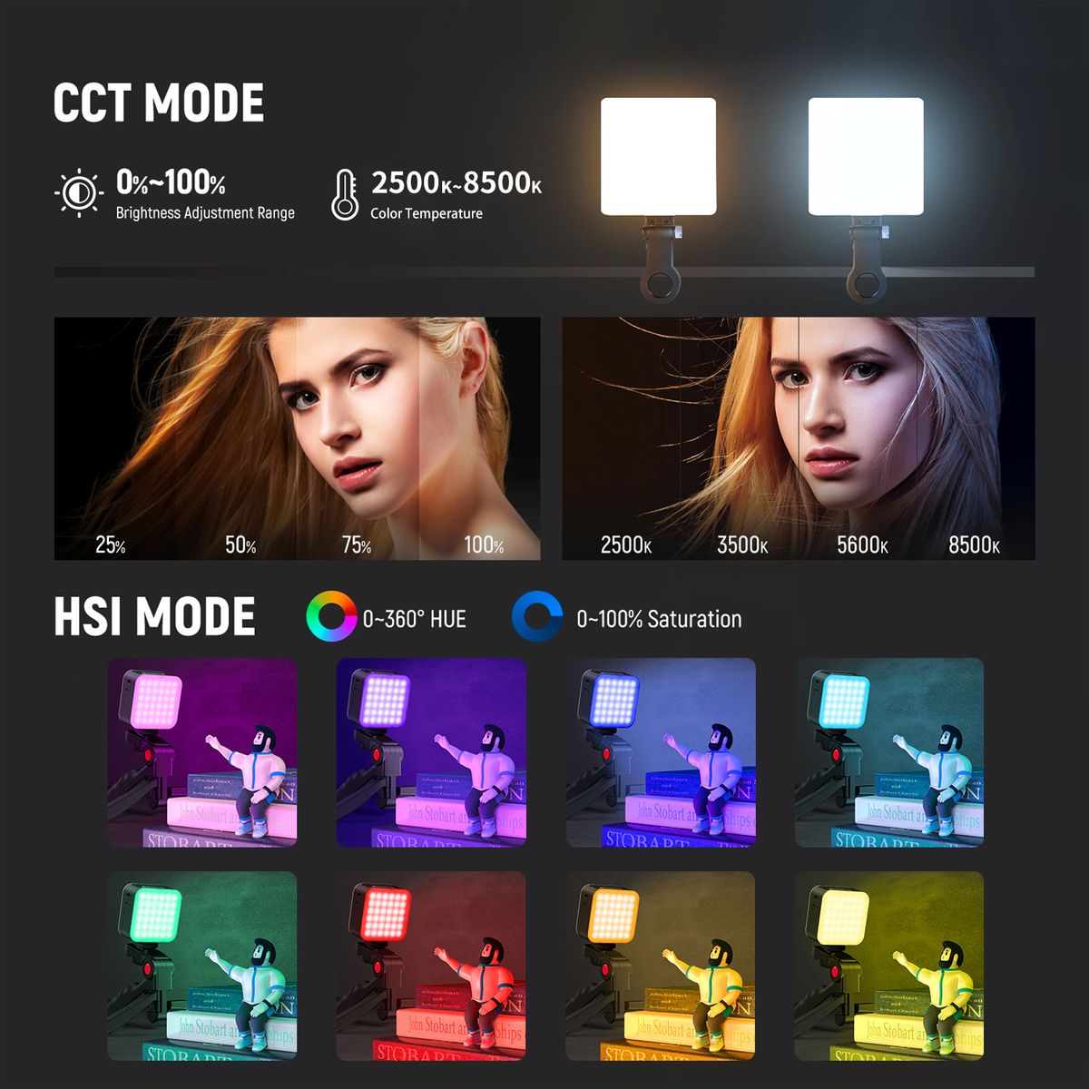 Azulamar RGB Camera Smartphone laptop video light with Clip , LED video 2500K-9000K, Mini Photo video lamp built-in battery Dimmable CRI 95+, Portable Stream lighting for photography and Vlog, magnetic accessories