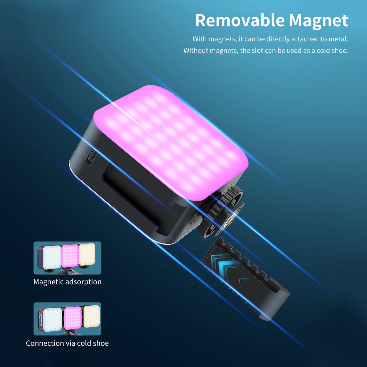 2 magnet sheets are provided On both sides of this RGB panel, which allow you to hang this led light On metal objects (such as camera), and facilitate your use.